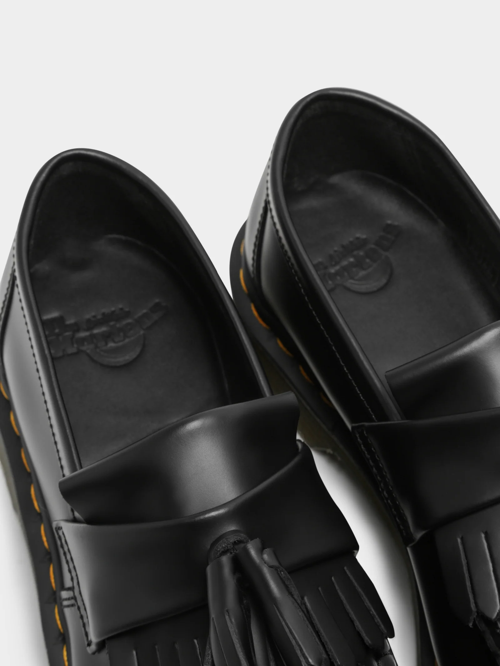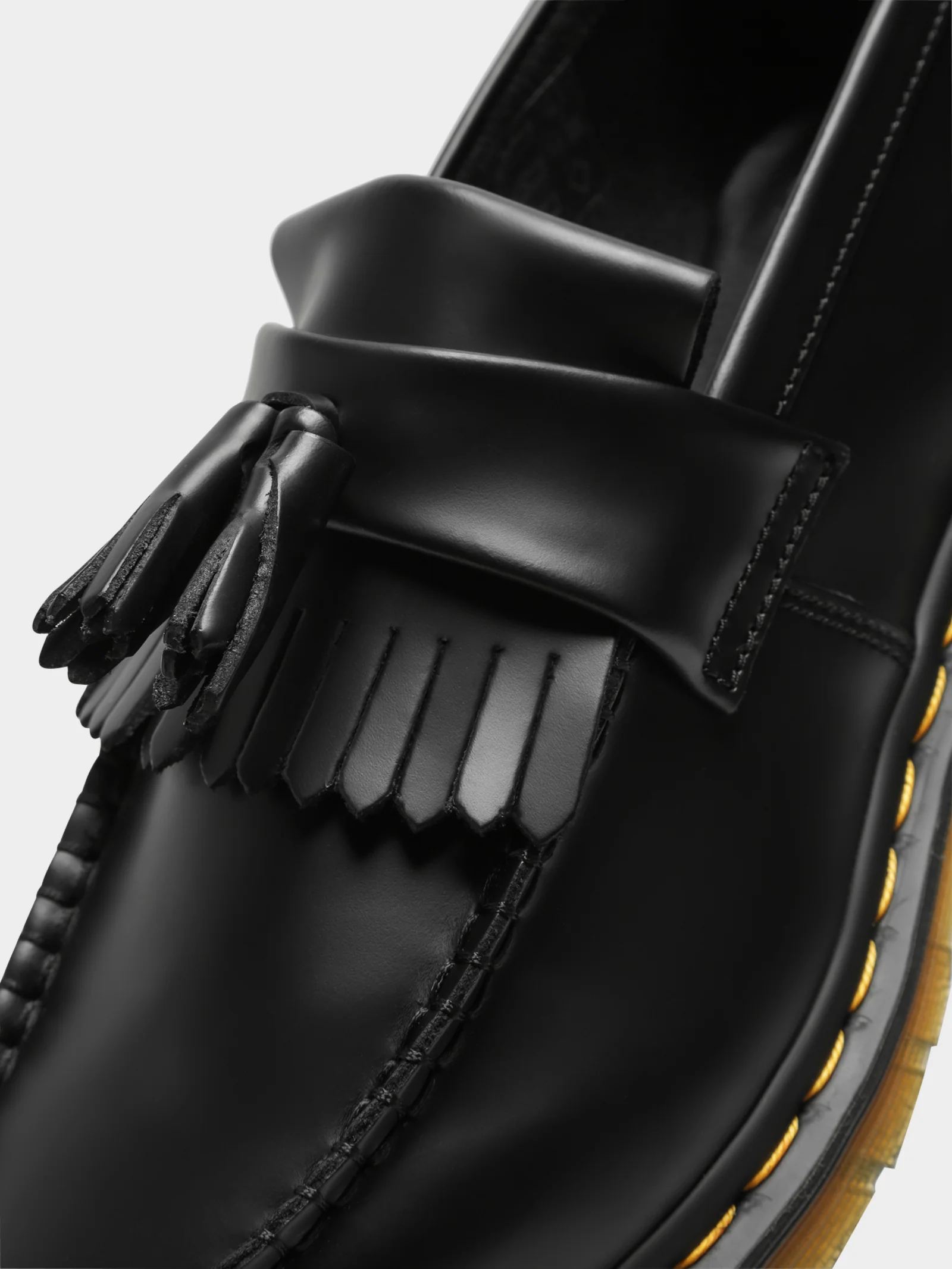 A subcultural icon reimagined, the Dr. Martens Adrian Tassel Loafers in Black blend heritage craftsmanship with rebellious edge. Crafted from genuine leather with a partial lining, these slip-on loafers feature a classic silhouette with a fringed vamp and signature tassel detailing. Finished with visible top-stitching and a rounded toe, this versatile style is built to stand the test of time.