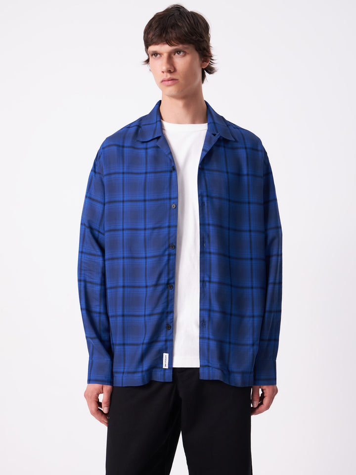Lightweight camp collar long sleeve shirt in relaxed cut.