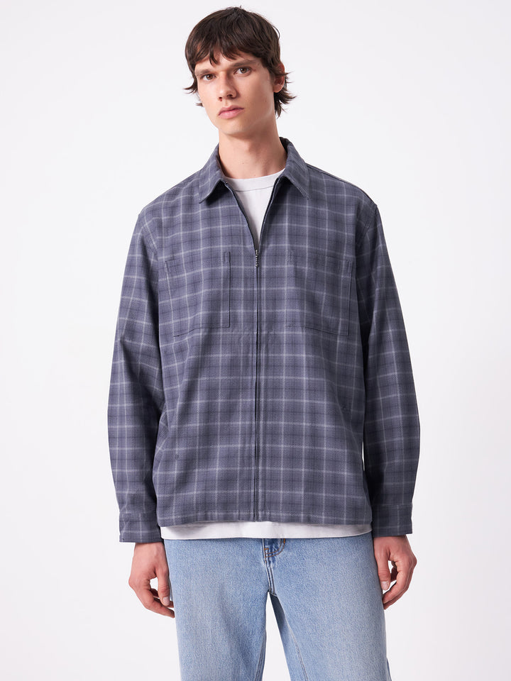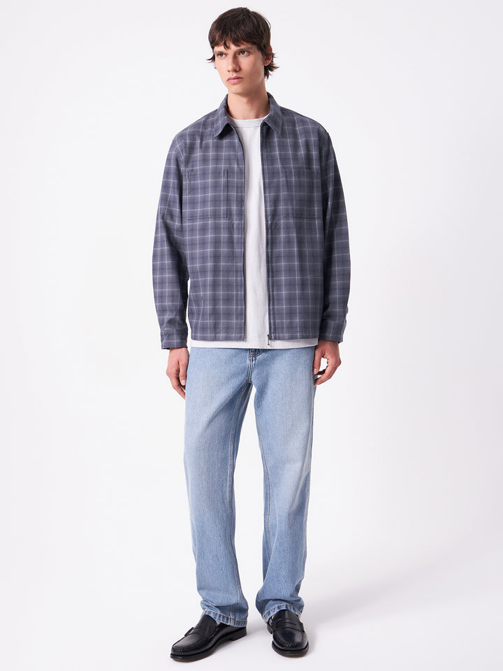 The Barker Jacket in Navy Multi features a classic checked pattern, and a relaxed-fit.