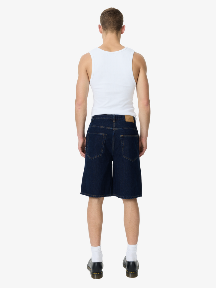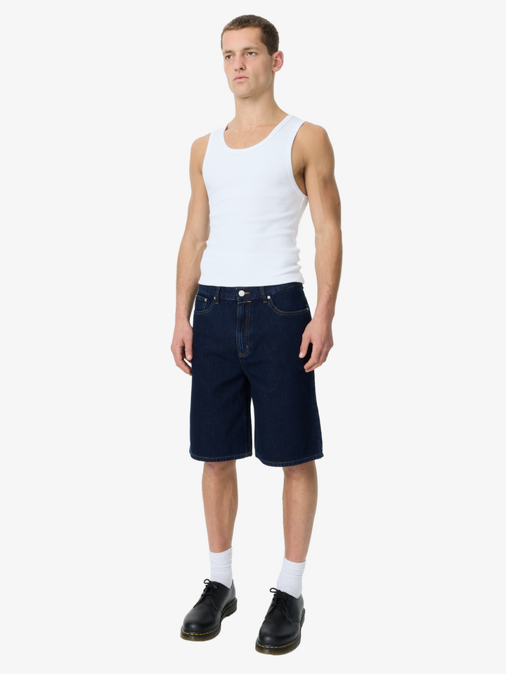 The Bertie Jean Short in Indigo Stone is cut in a relaxed fit with a longer length.