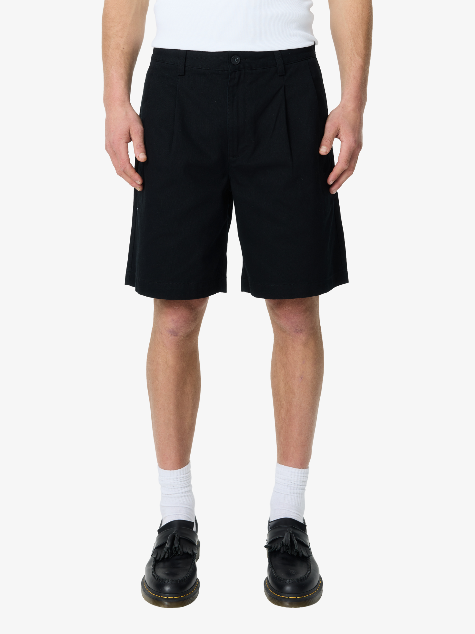 The Bolton Chino Short in Black is cut in a clean, tailored silhouette.