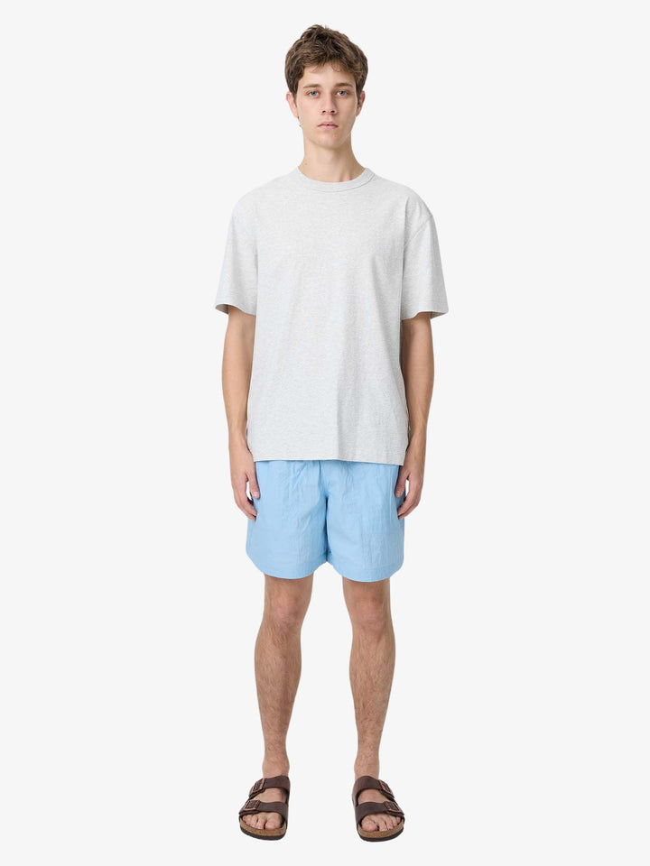 The Bryn Swim Short from Article One is cut with an easy mid-thigh length and airy finish. Designed with a gathered elastic waist, on-seam pockets, and rear patch pocket.