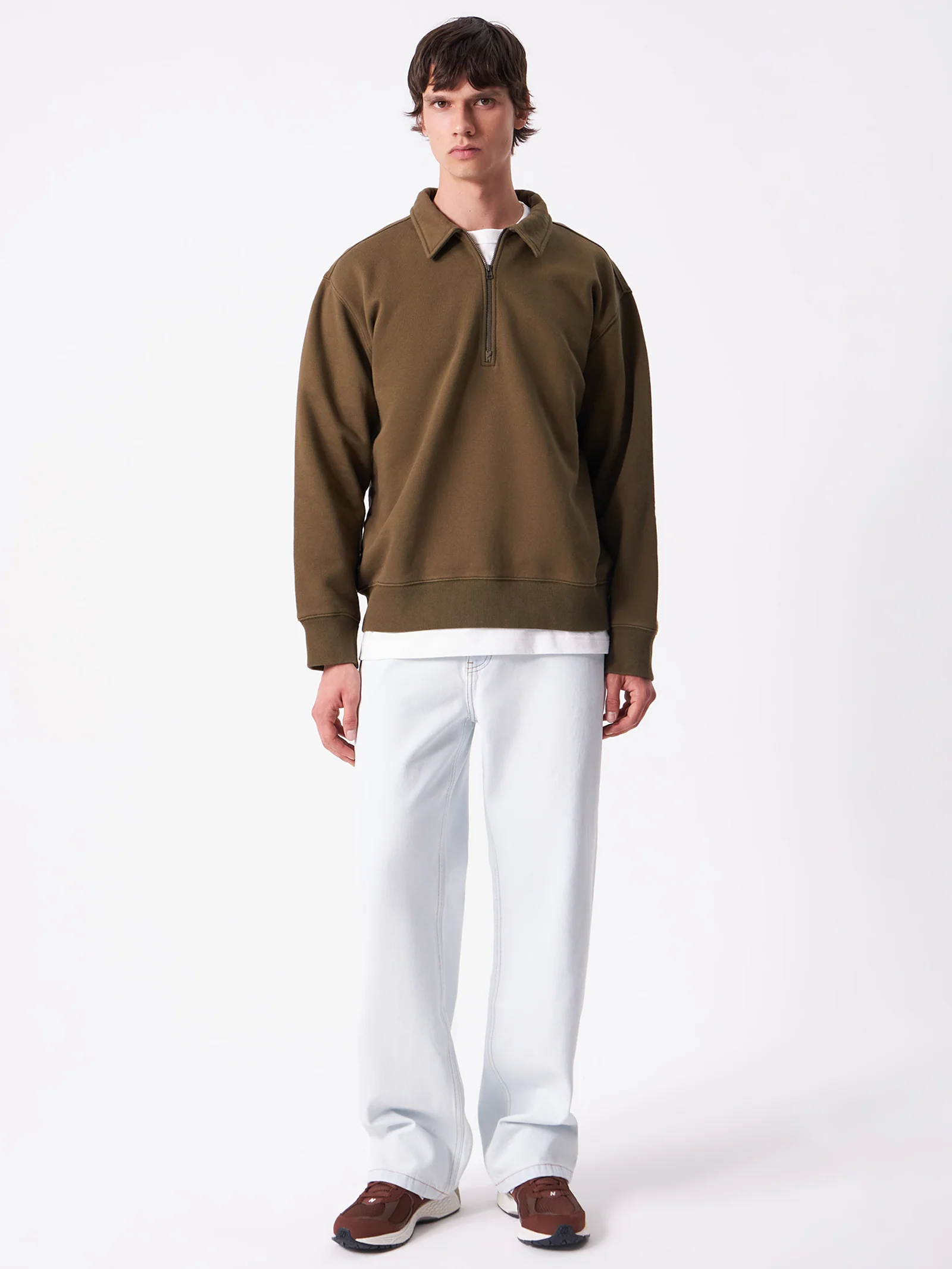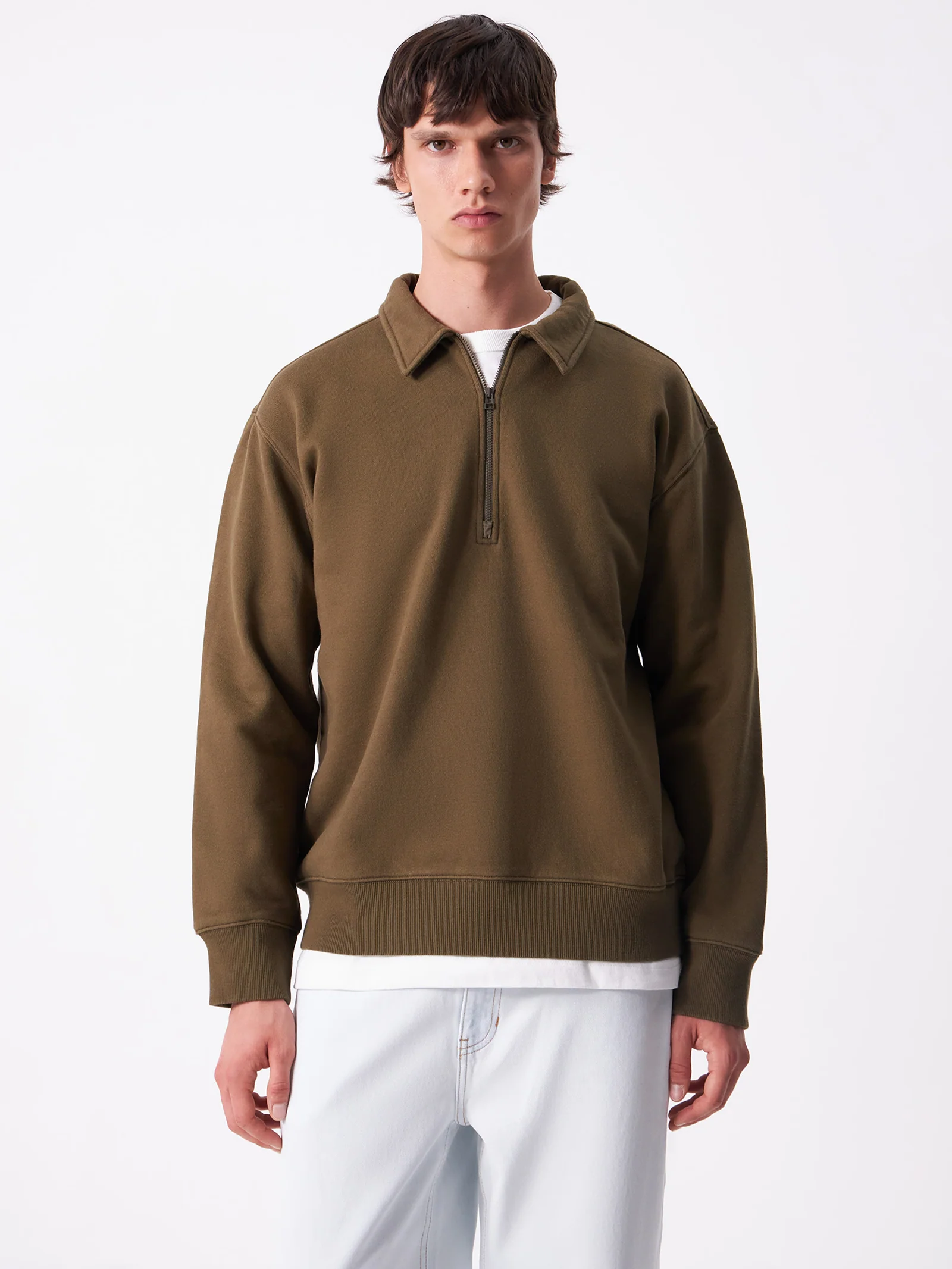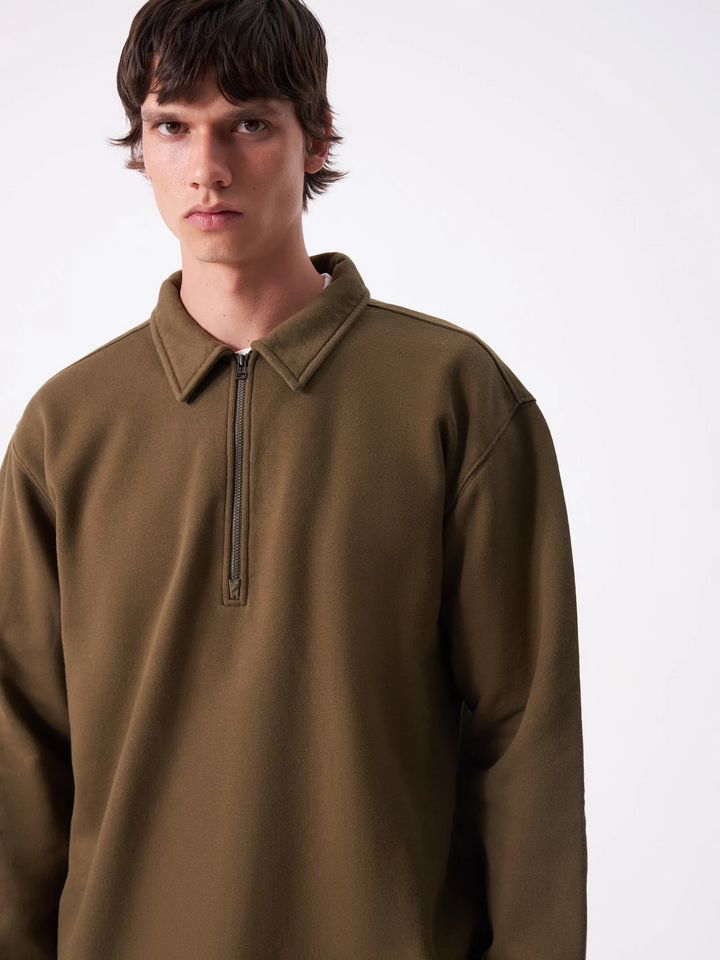 Collared quarter zip sweatshirt, cut from our signature brushed loopback fleece.