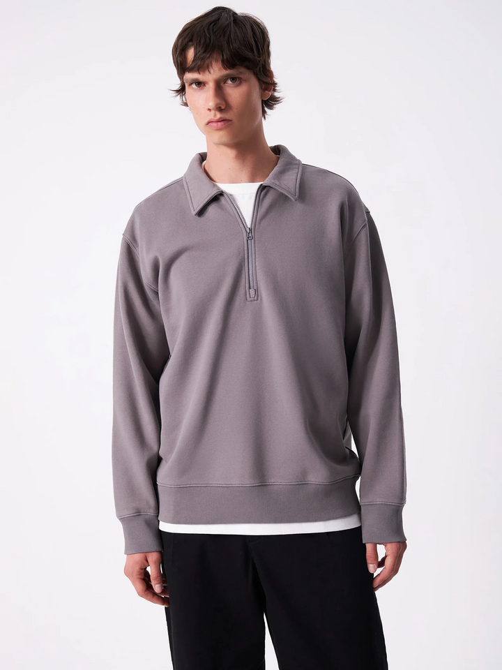 Collared quarter zip sweatshirt, cut from our signature brushed loopback fleece.