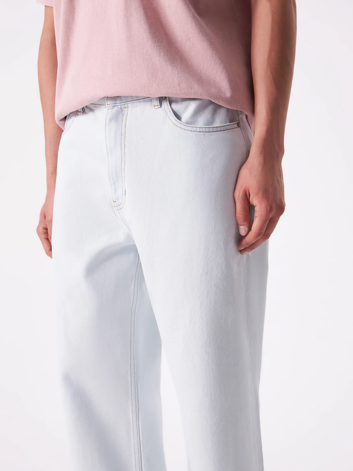 The Duff Jean Bleach Blue is designed with a relaxed straight-leg fit and offer a classic five-pocket design and a zip fly with button closure.