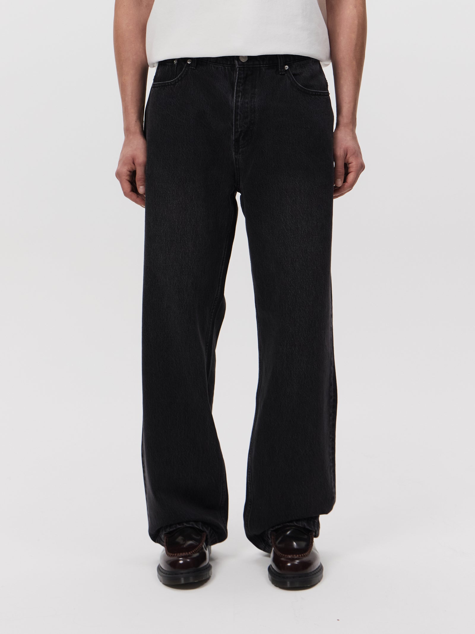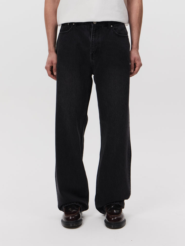 The Duff Jean in Vintage Black features a relaxed straight-leg fit and subtle fading.
