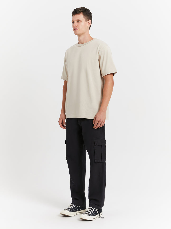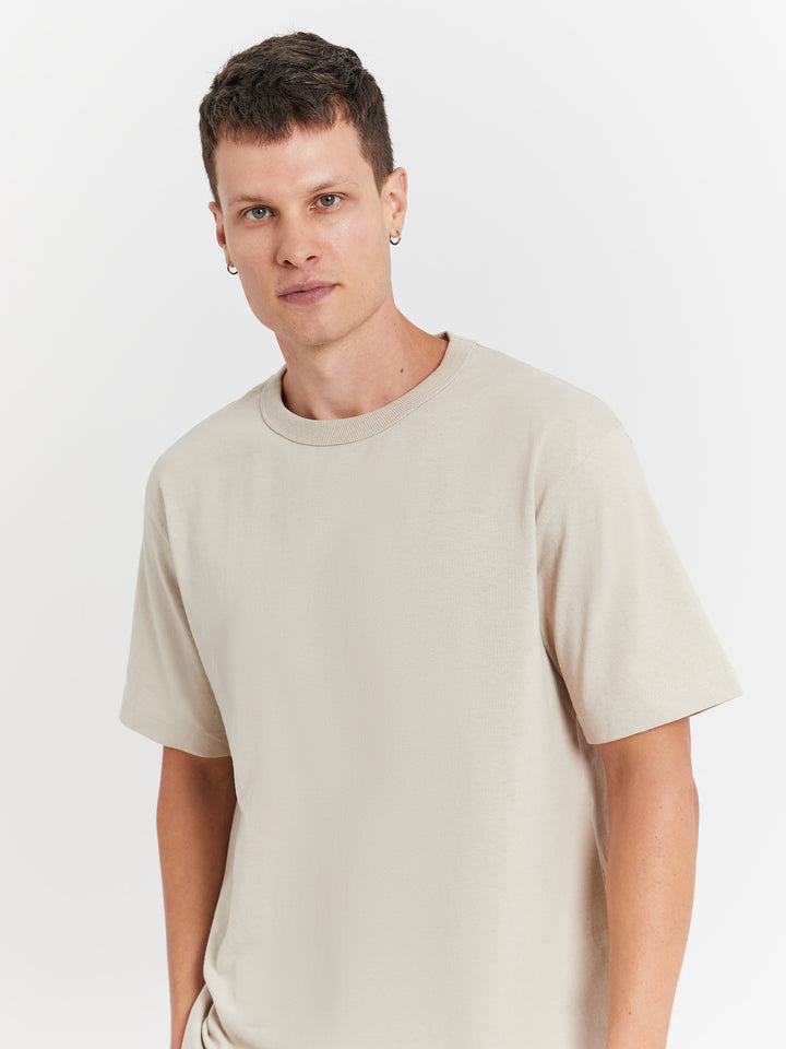 The Heavyweight Crew T-Shirt is designed with a boxy silhouette, finished with a ribbed crew neckline and twin needle stitching.