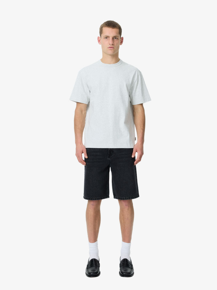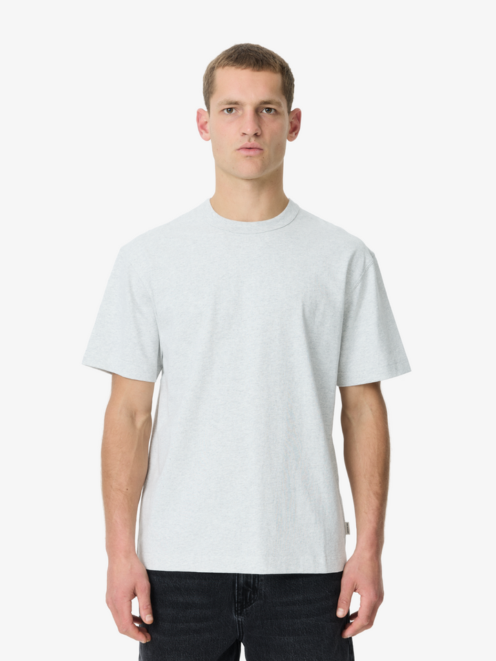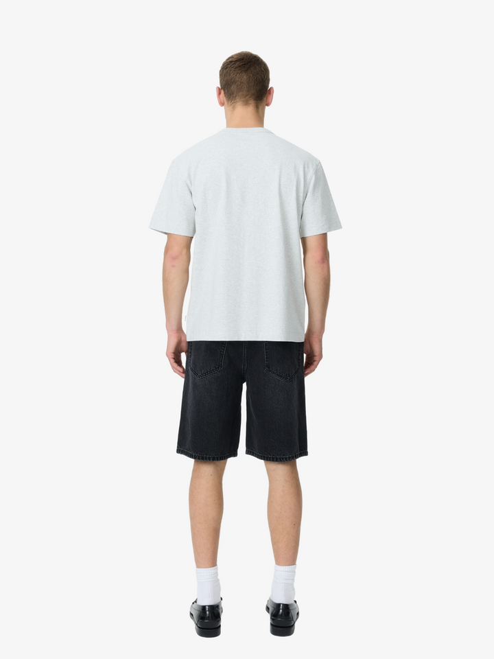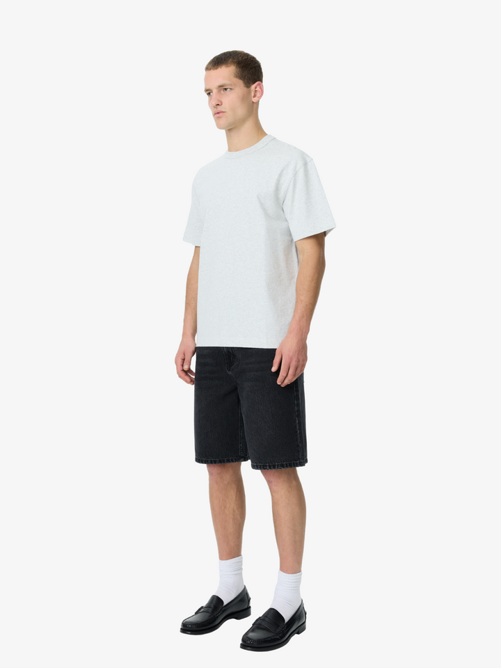 The Heavyweight Tee in Ash Heather by Article One is crafted from a dense cotton jersey. This tee features an ash finish, relaxed fit, crew neckline and tonal stitching.