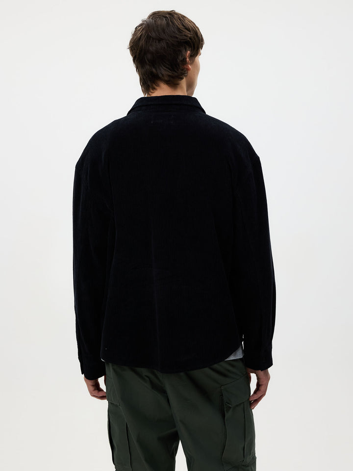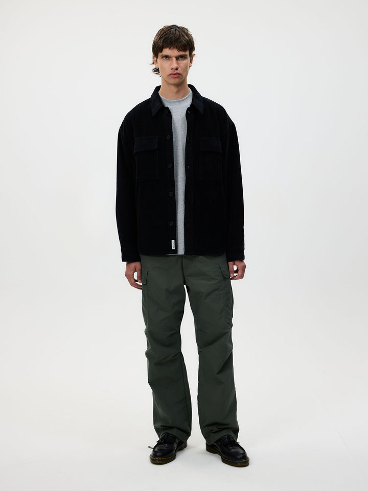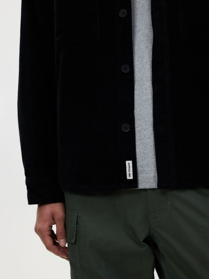 The Hunter Cord Overshirt in Charcoal is crafted from soft cotton corduroy. This overshirt offers a button-through front and twin chest pockets.