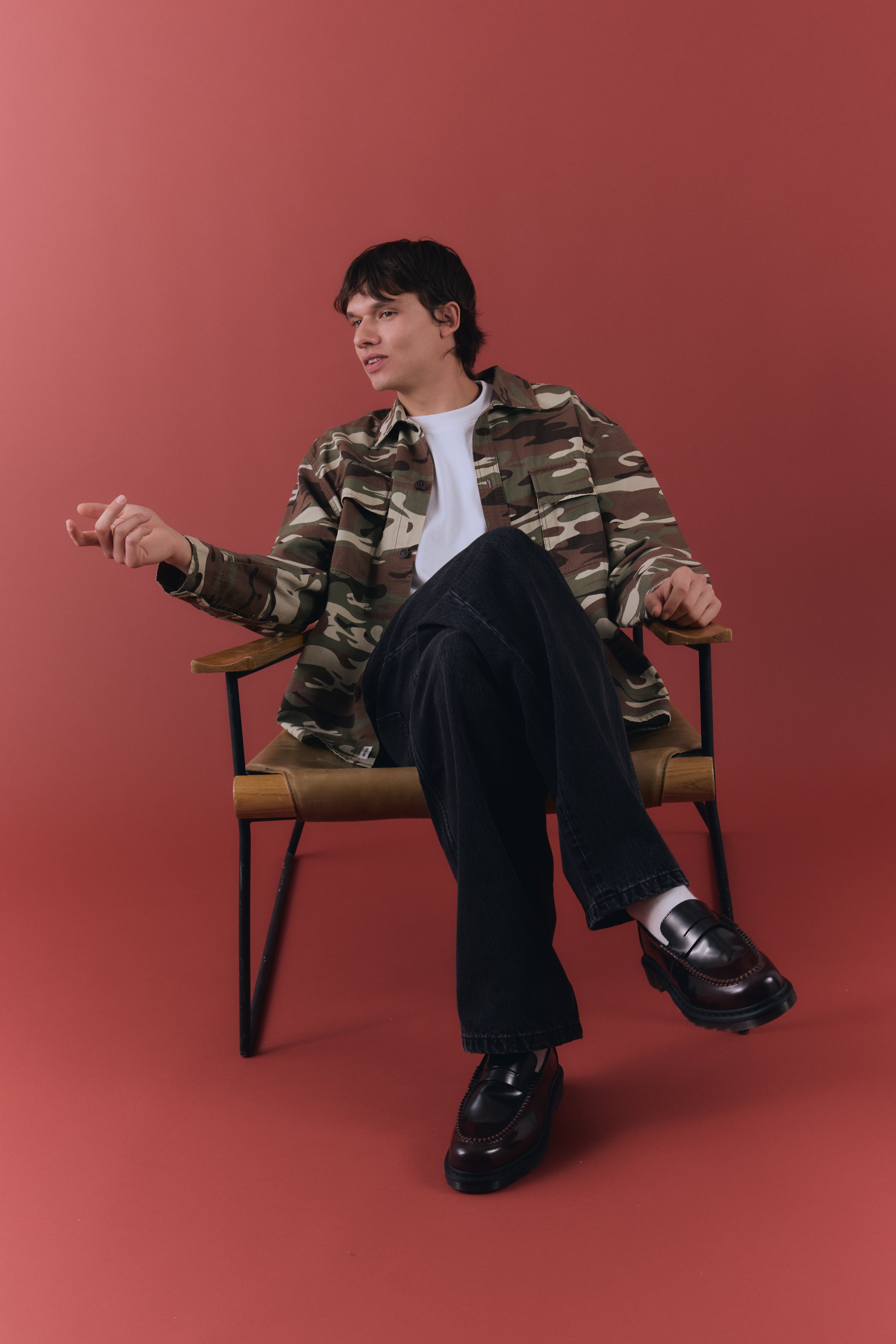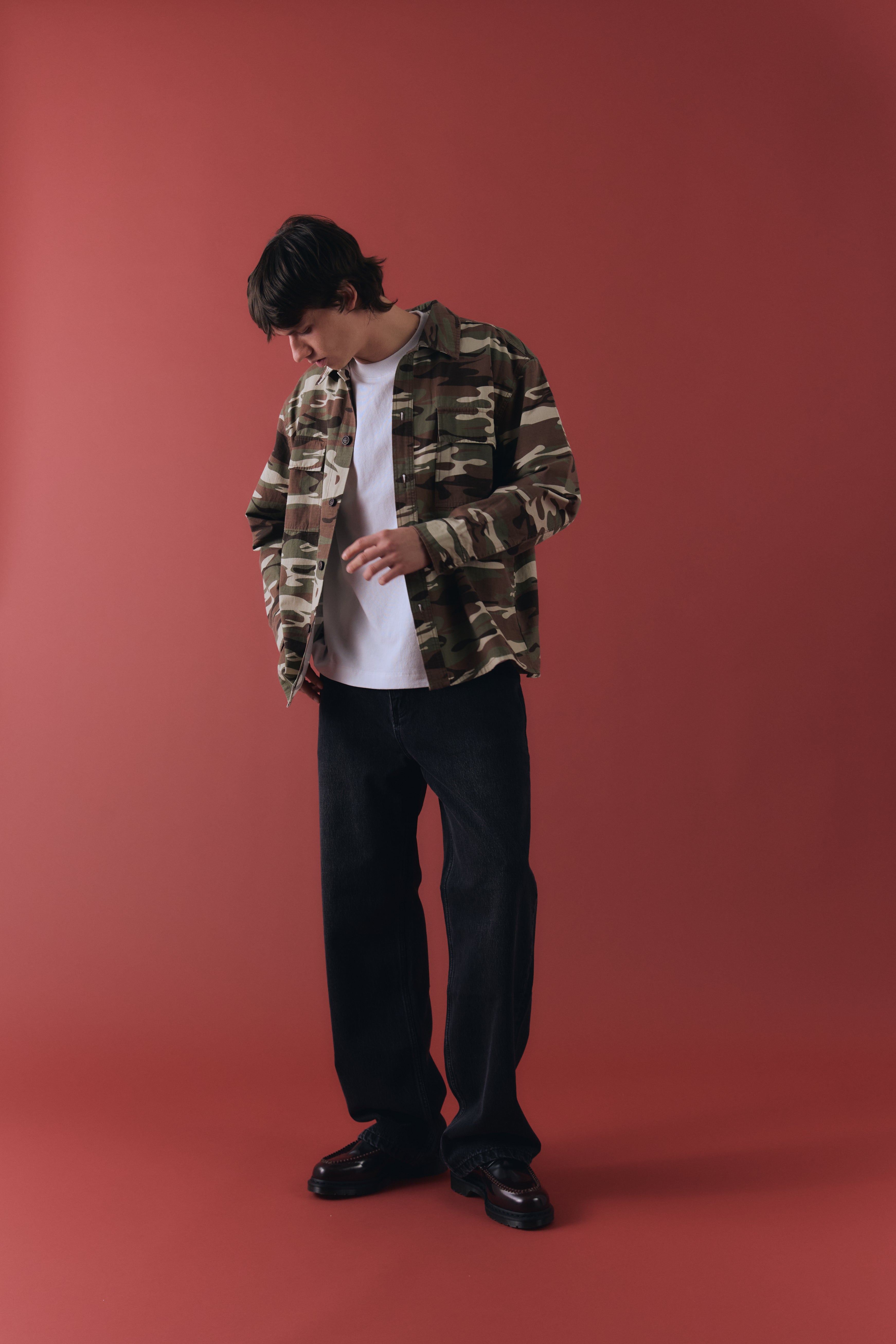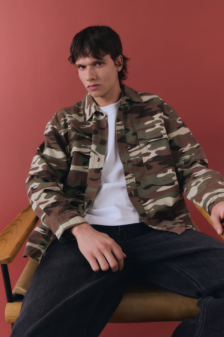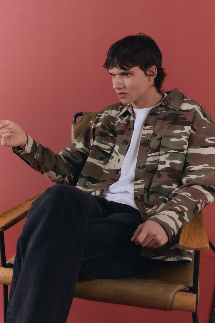 The Hunter Overshirt is cut to a relaxed silhouette with functional chest pockets and a structured collar.