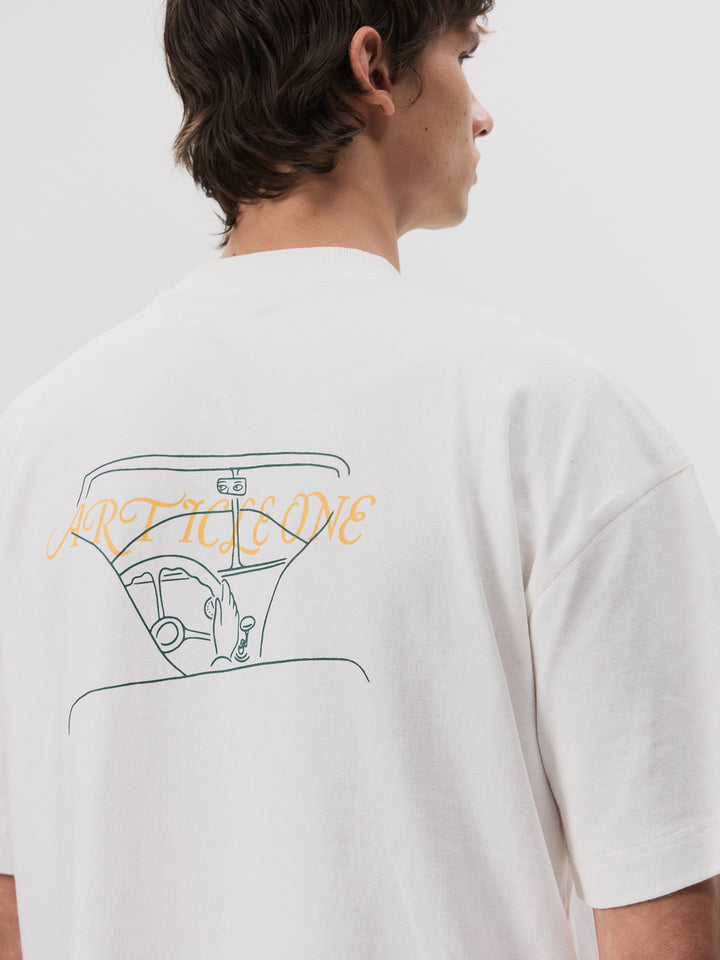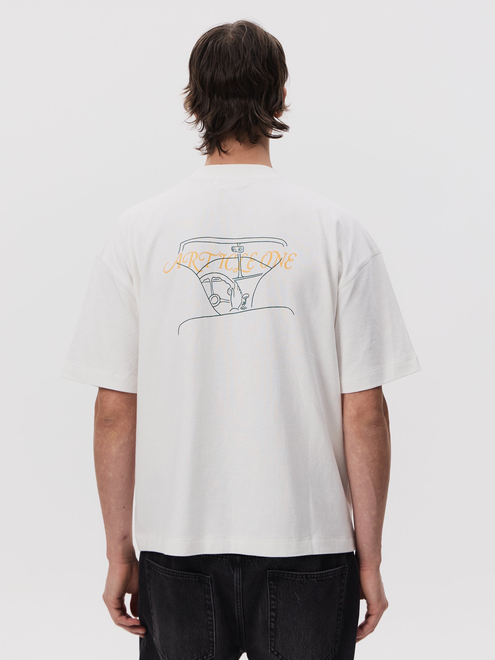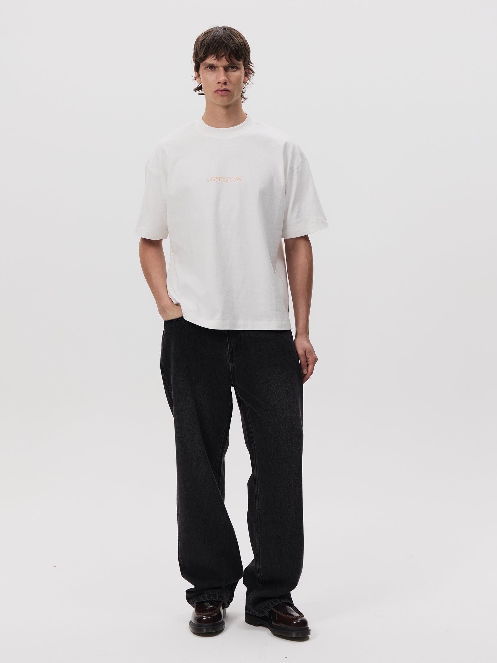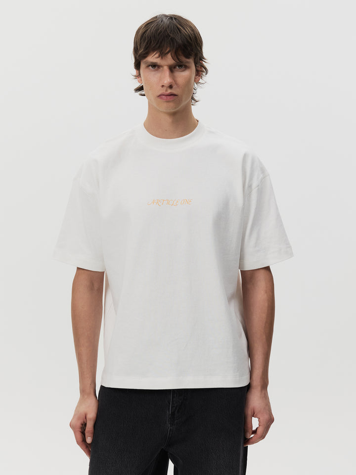 Boxy-fit, oversized tee, featuring minimal Article One printed logo.