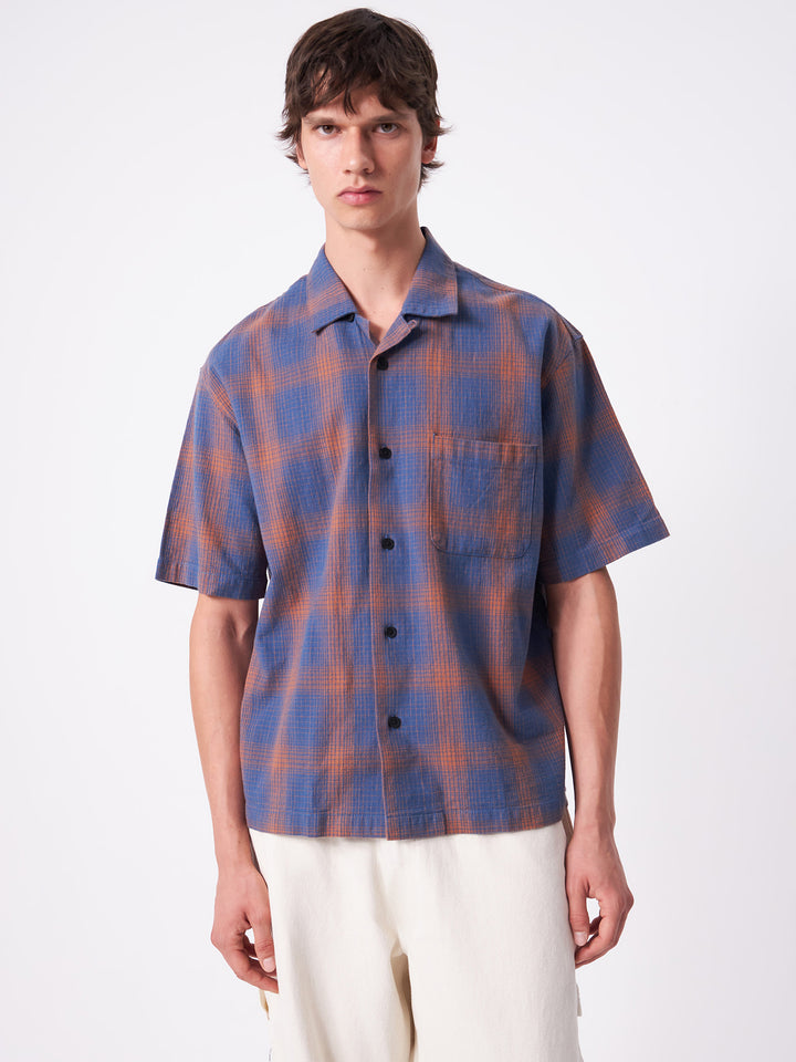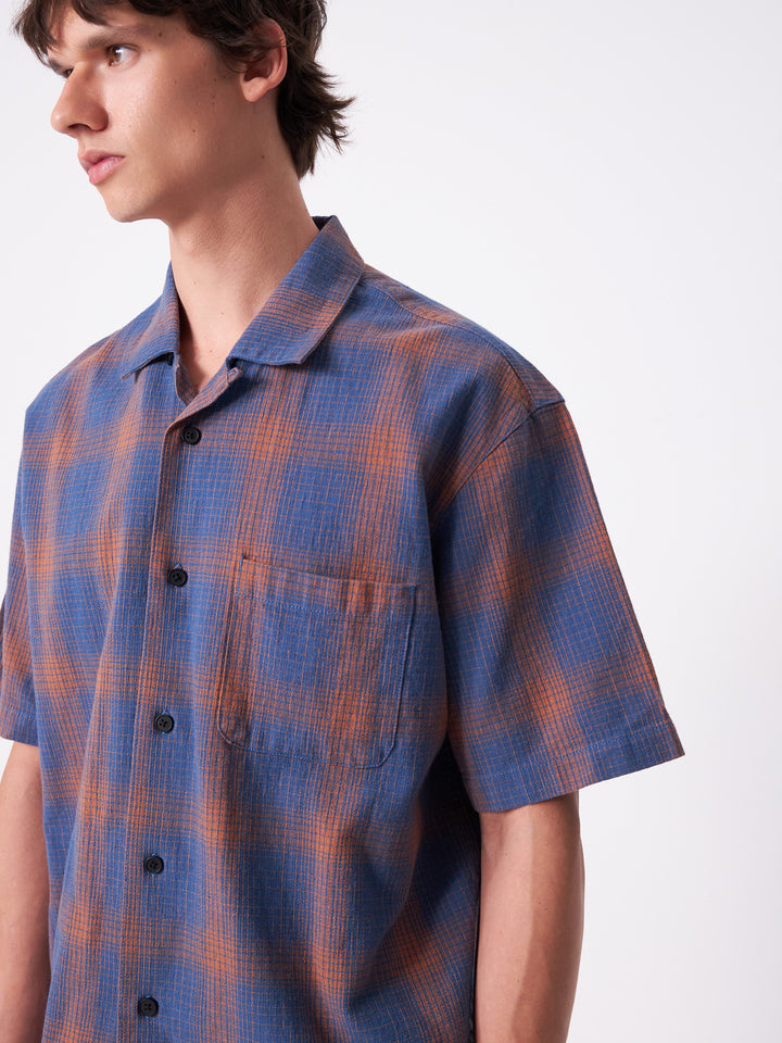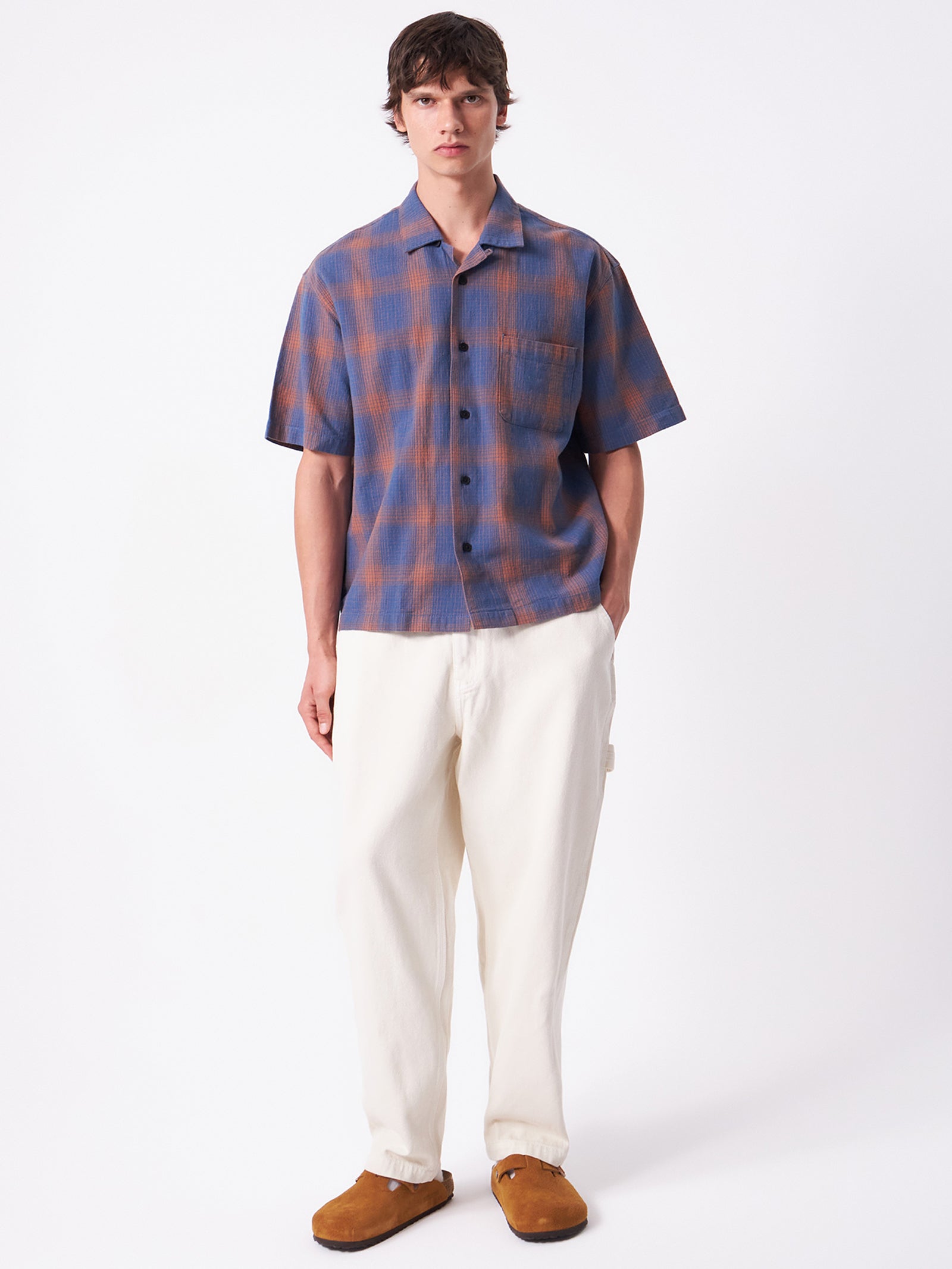 Relaxed fit short-sleeve shirt in midweight shirting, cut to be worn alone or over a tee.