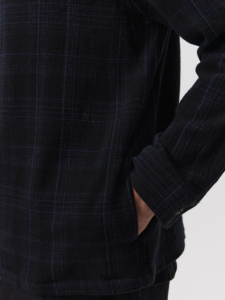 The Porter Zip Shirt in Black and Blue blends modern utility with refined style, featuring a sleek zip front, structured collar, and clean lines. Its relaxed fit and deep tonal palette make it perfect for layering over a tee or wearing on its own for a polished, versatile look.
