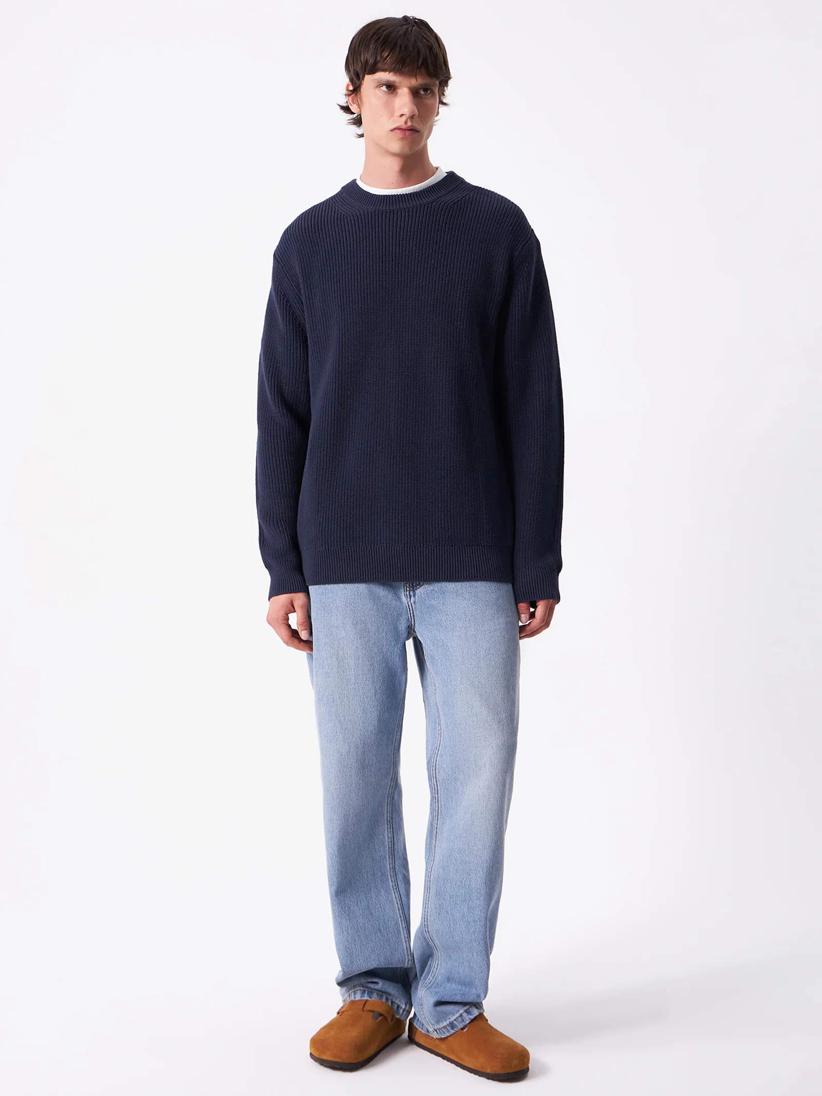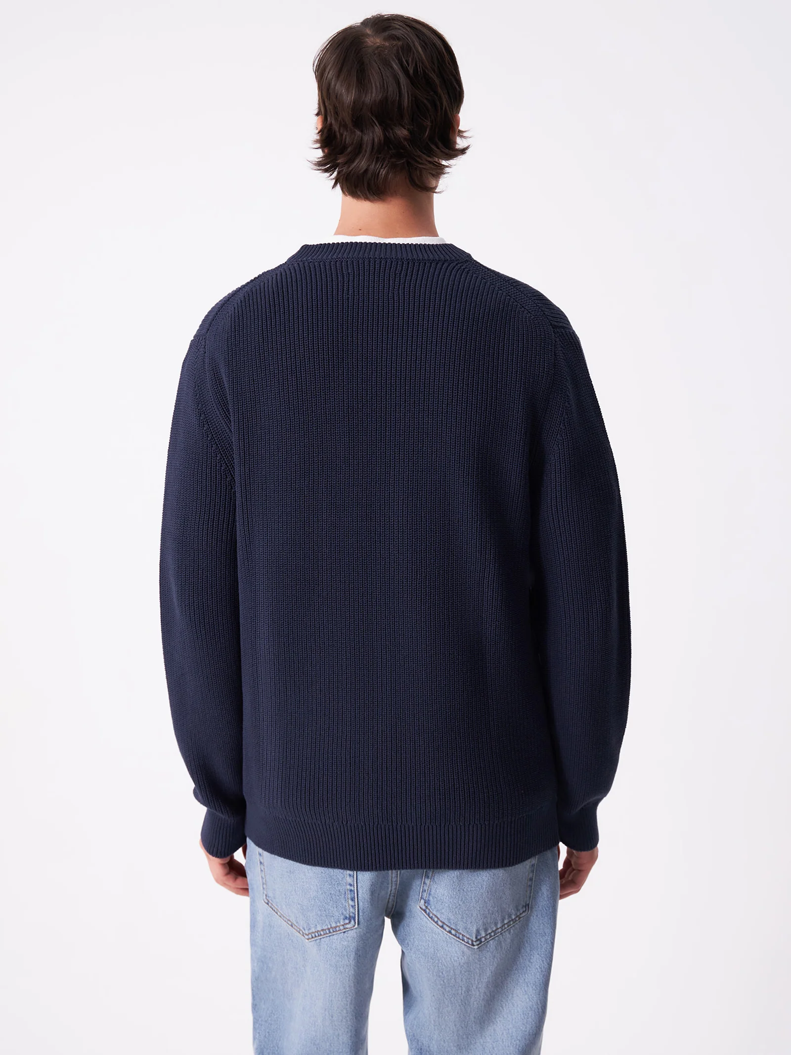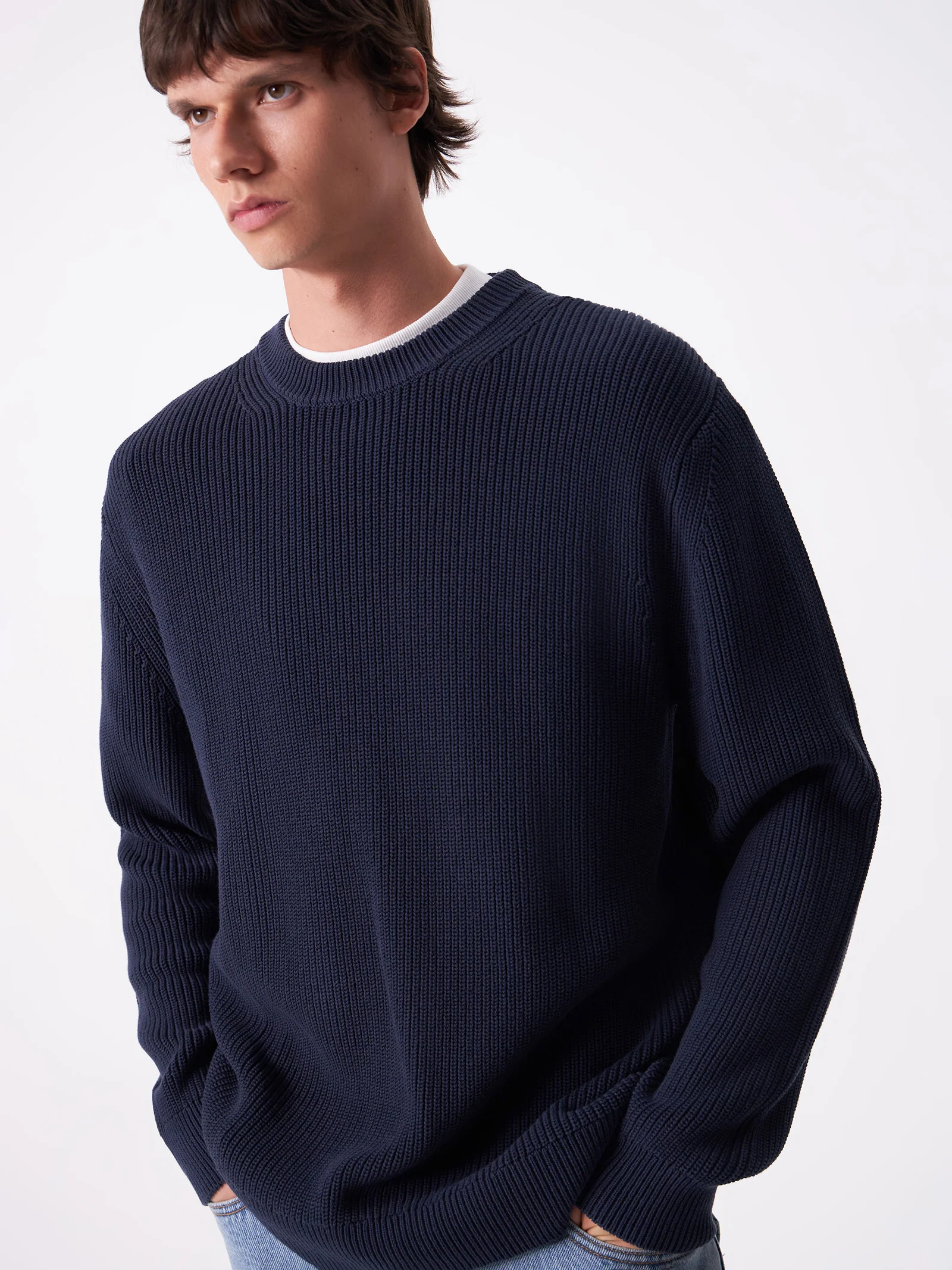 Jersey knit crewneck sweater in textured cotton rib. Designed to be worn all year.