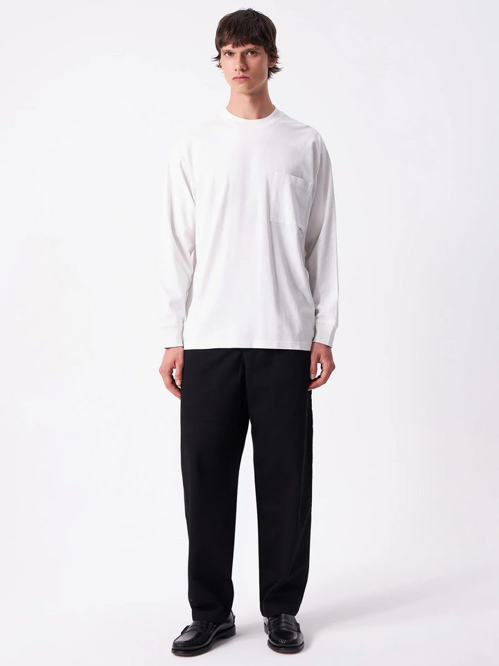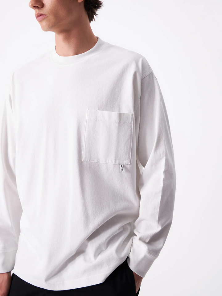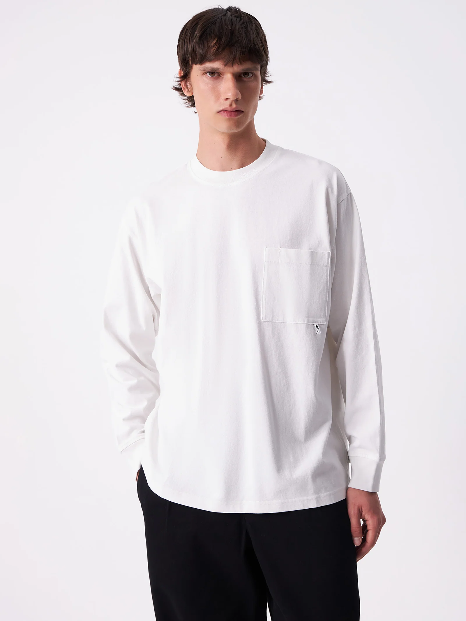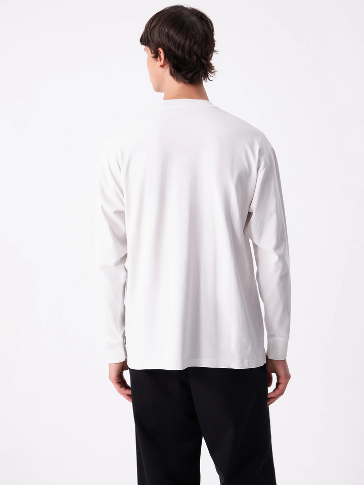 Boxy-cut garment-dye long-sleeve tee, using pigment dye for an uneven, washed dye style.
