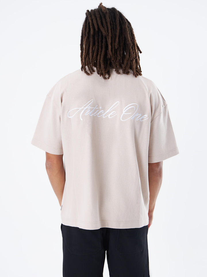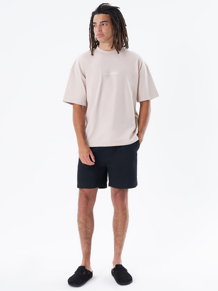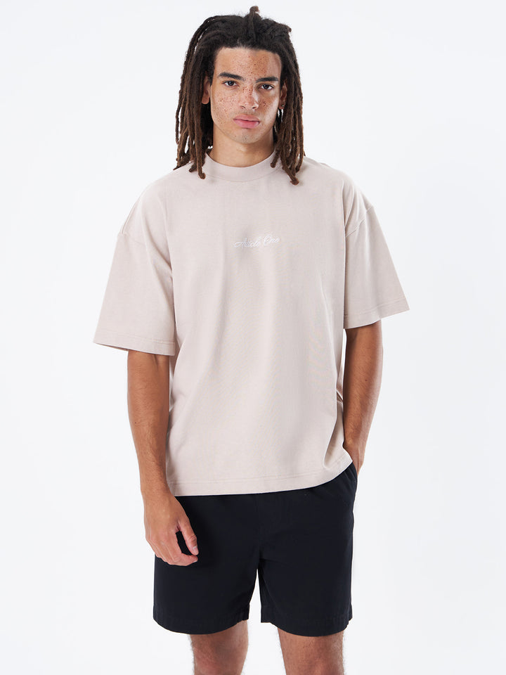 The Script Logo Tee is crafted from premium heavyweight cotton. This tee features a cursive script logo across the back and a centered logo on the chest.