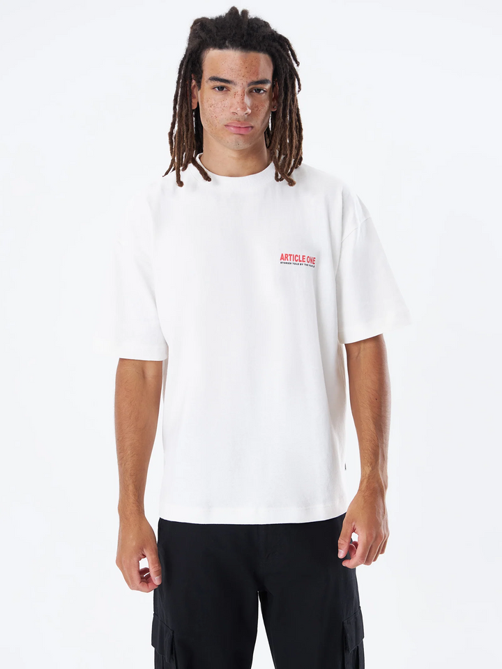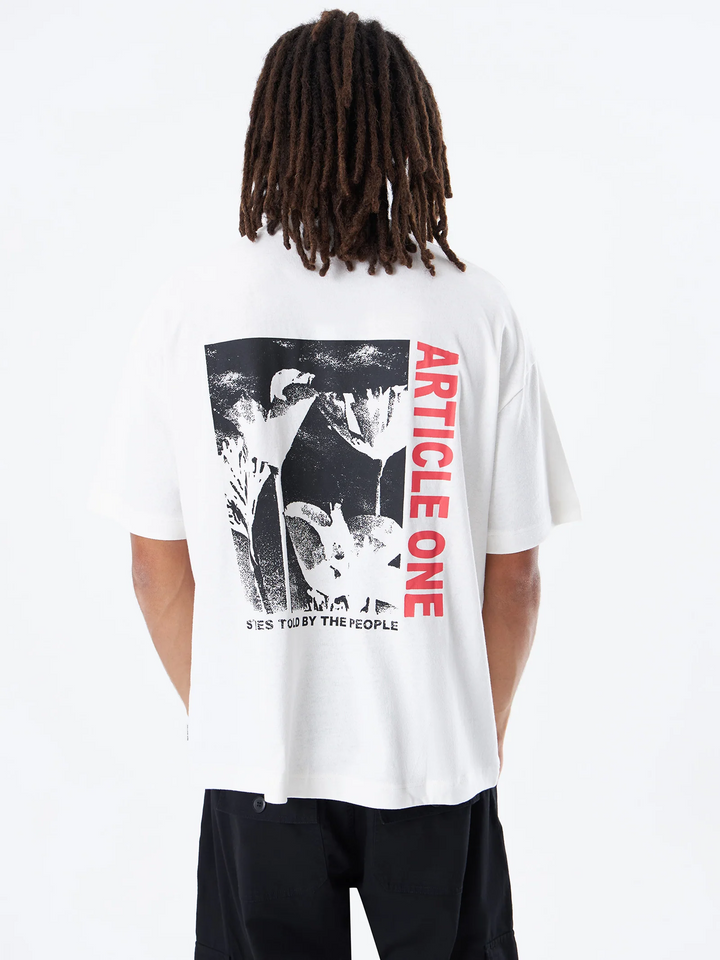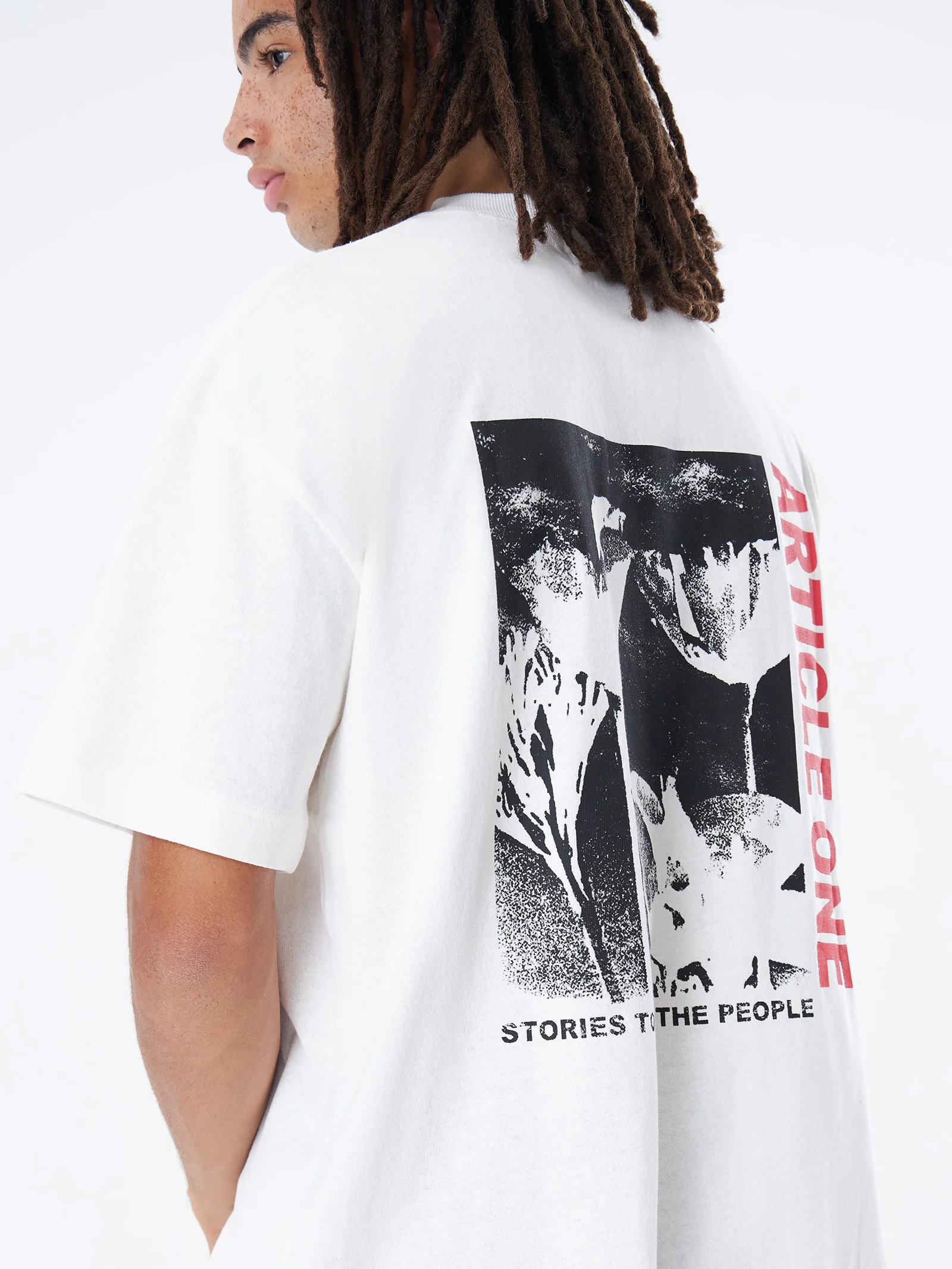 The Stories Boxy Tee is an oversized fit with a classic crewneck and bold graphics on the back.