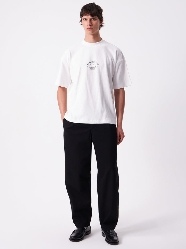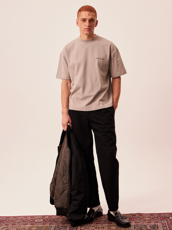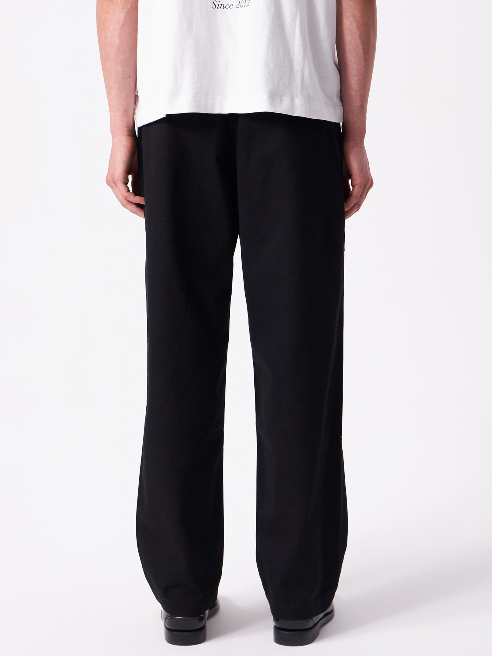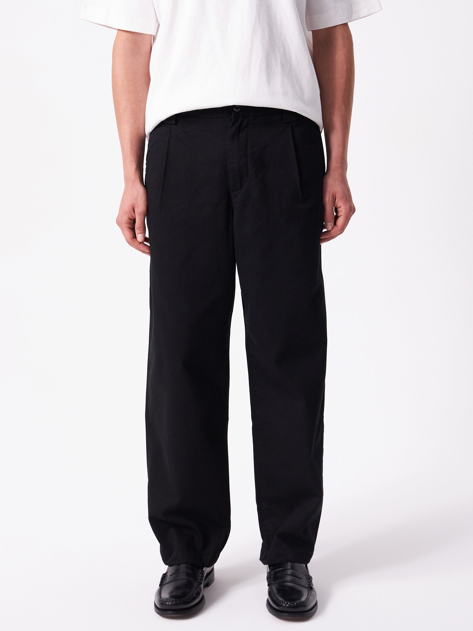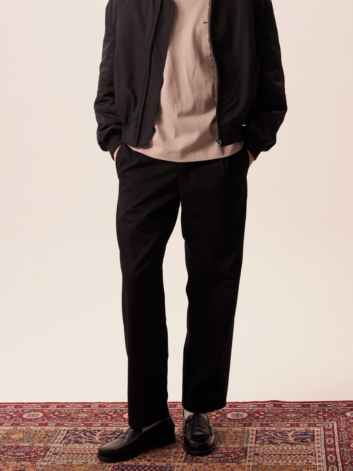Sturdy cotton twill work chino, with relaxed tapered cut and substantial utility details.