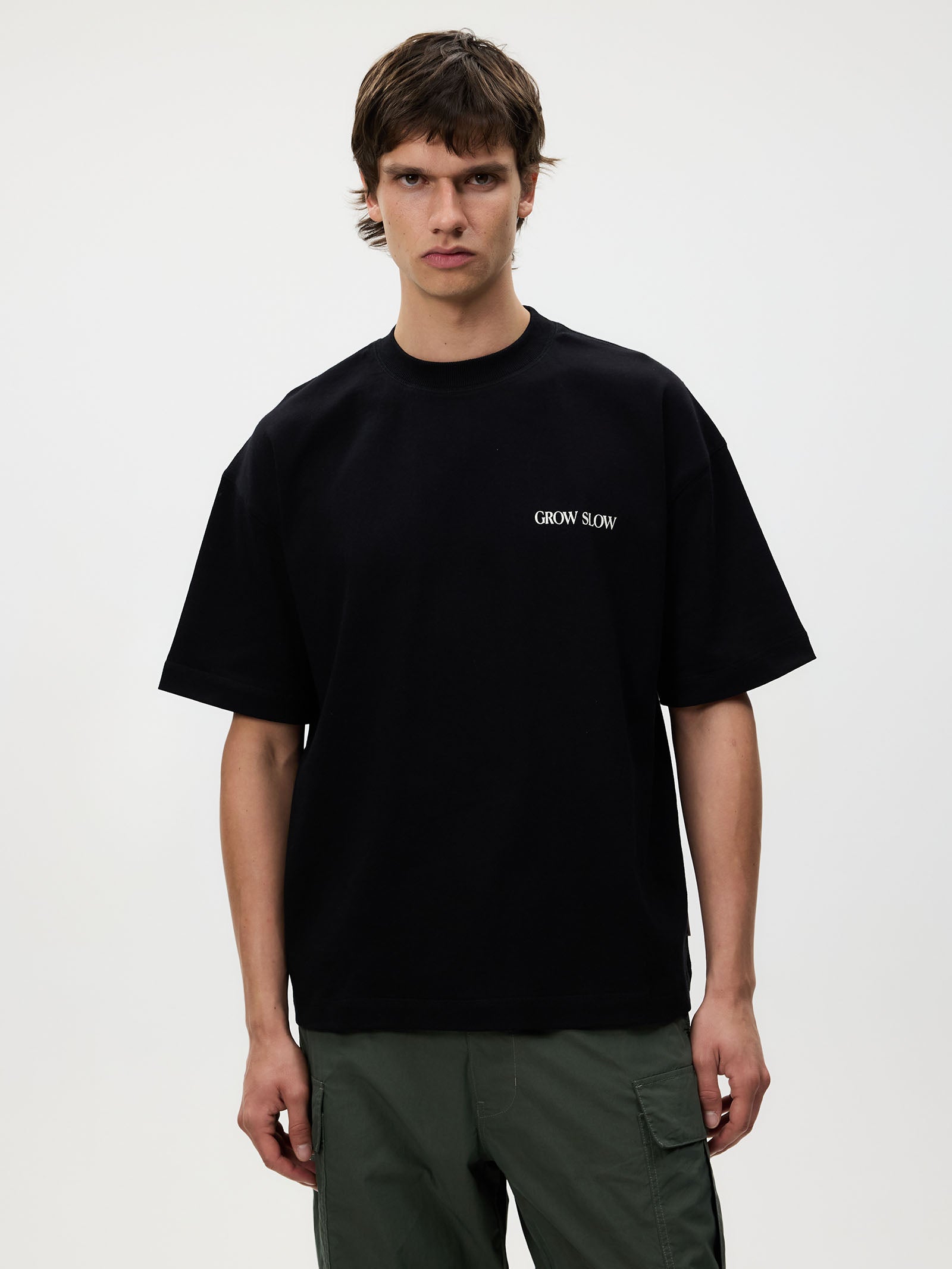The Article One T-shirt features an oversized fit and soft cotton construction with a minimalist "GROW SLOW" chest embroidery.