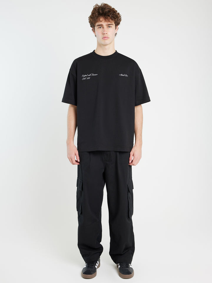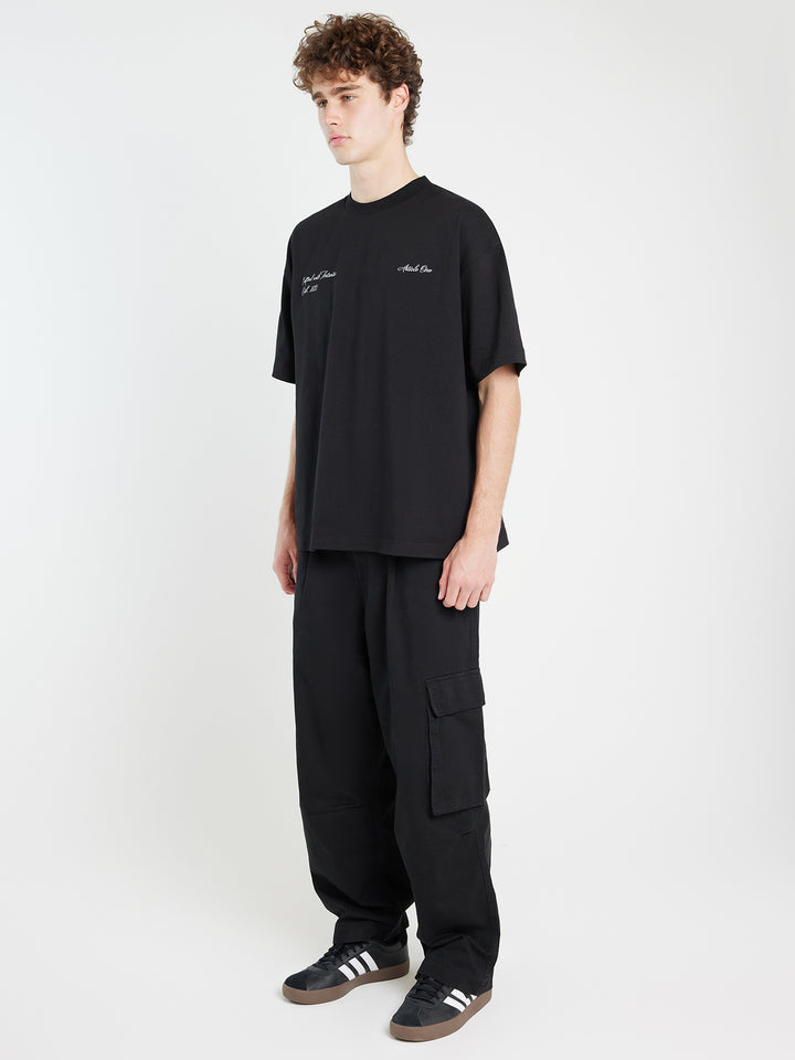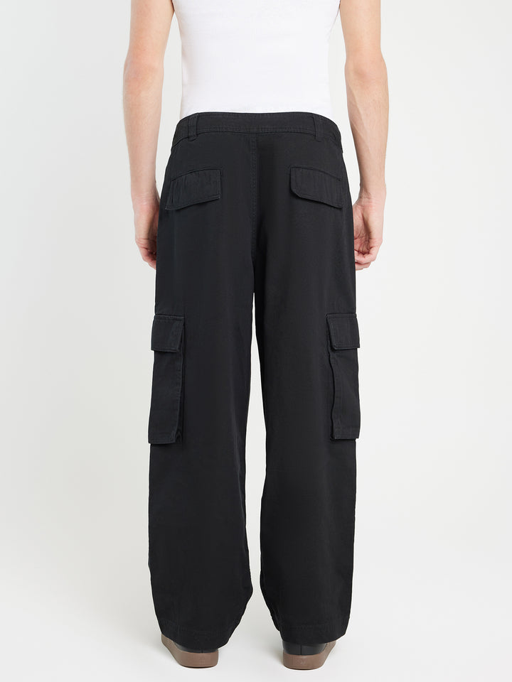The Winslow Cargo Pant in Black is designed with a straight-leg fit and full-length design.