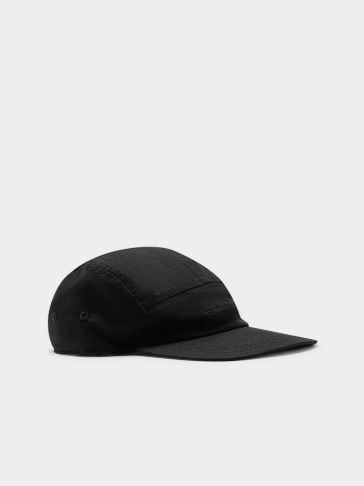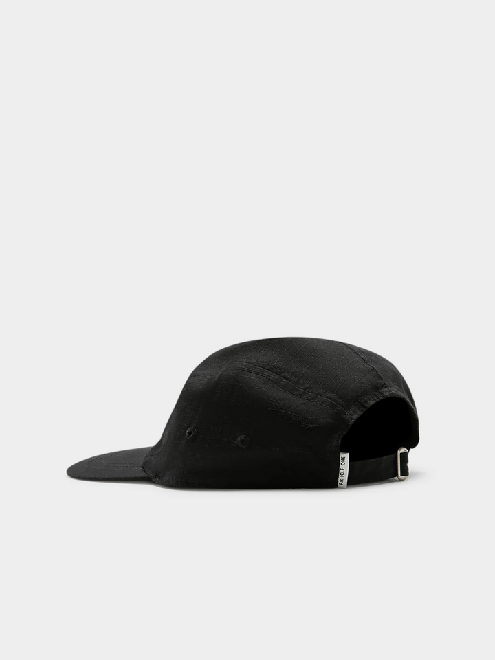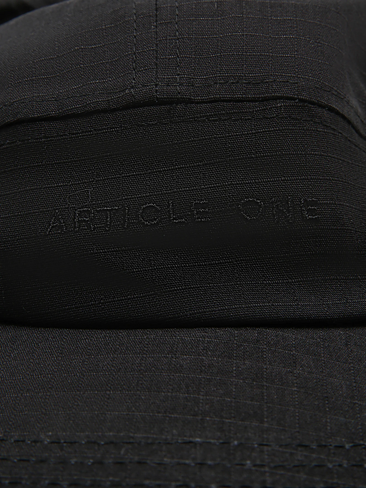 This black worker cap features an unstructured fit and is made from durable cotton ripstop for a lightweight, breathable feel. Finished with a flat brim, adjustable back strap, and an Article One logo on the front panel, it blends utility with clean, everyday style.