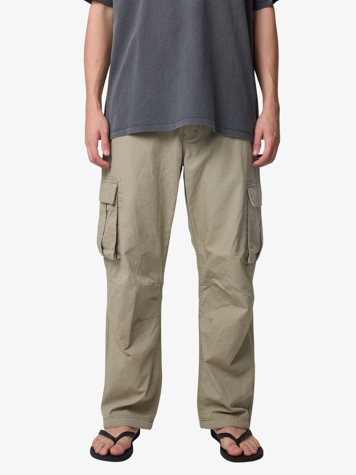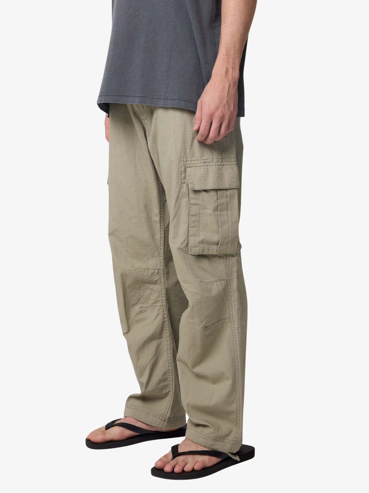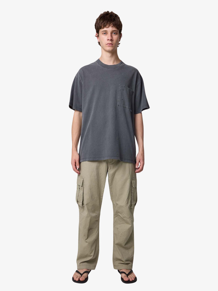 The Wyatt Cargo Pant by Article One has a straight-leg shape and a relaxed fit, built with a strong woven material. It features six pockets in total, including spacious cargo pockets on the sides, with all construction secured by visible double-stitching.