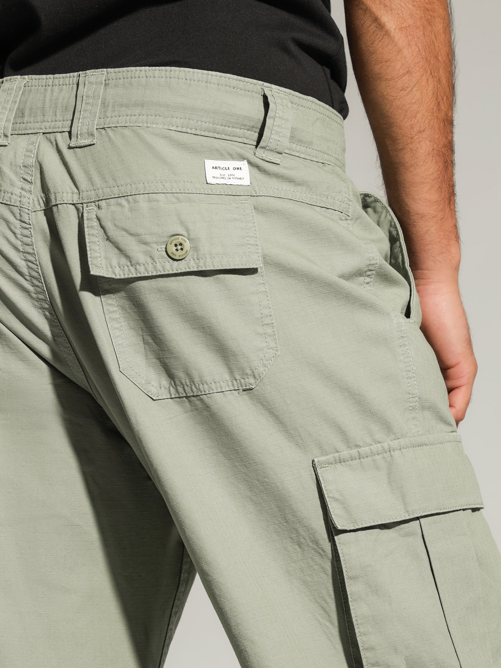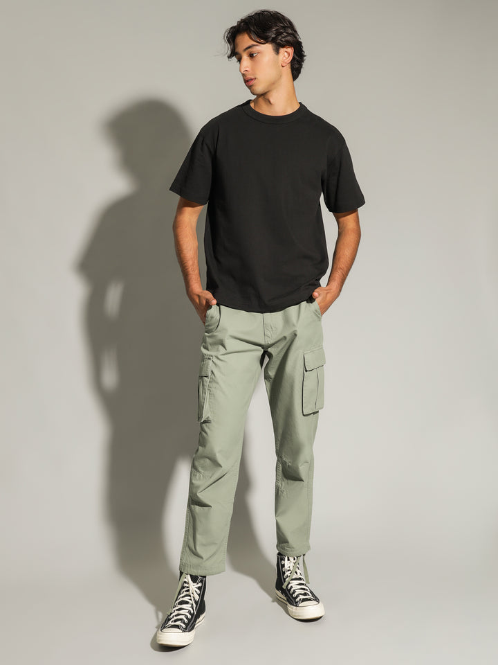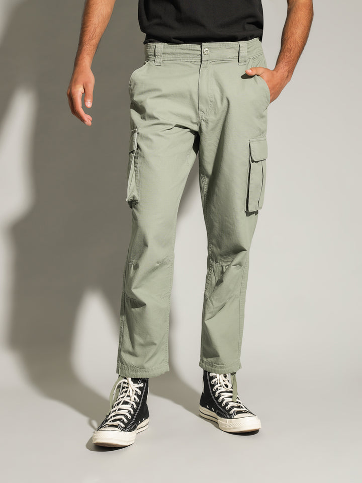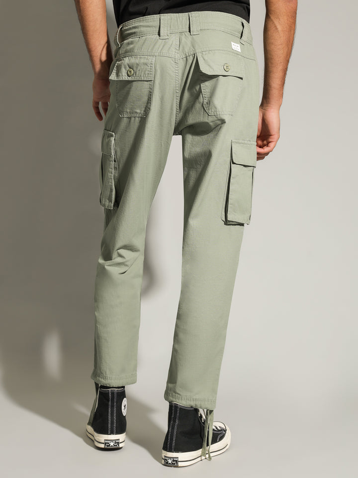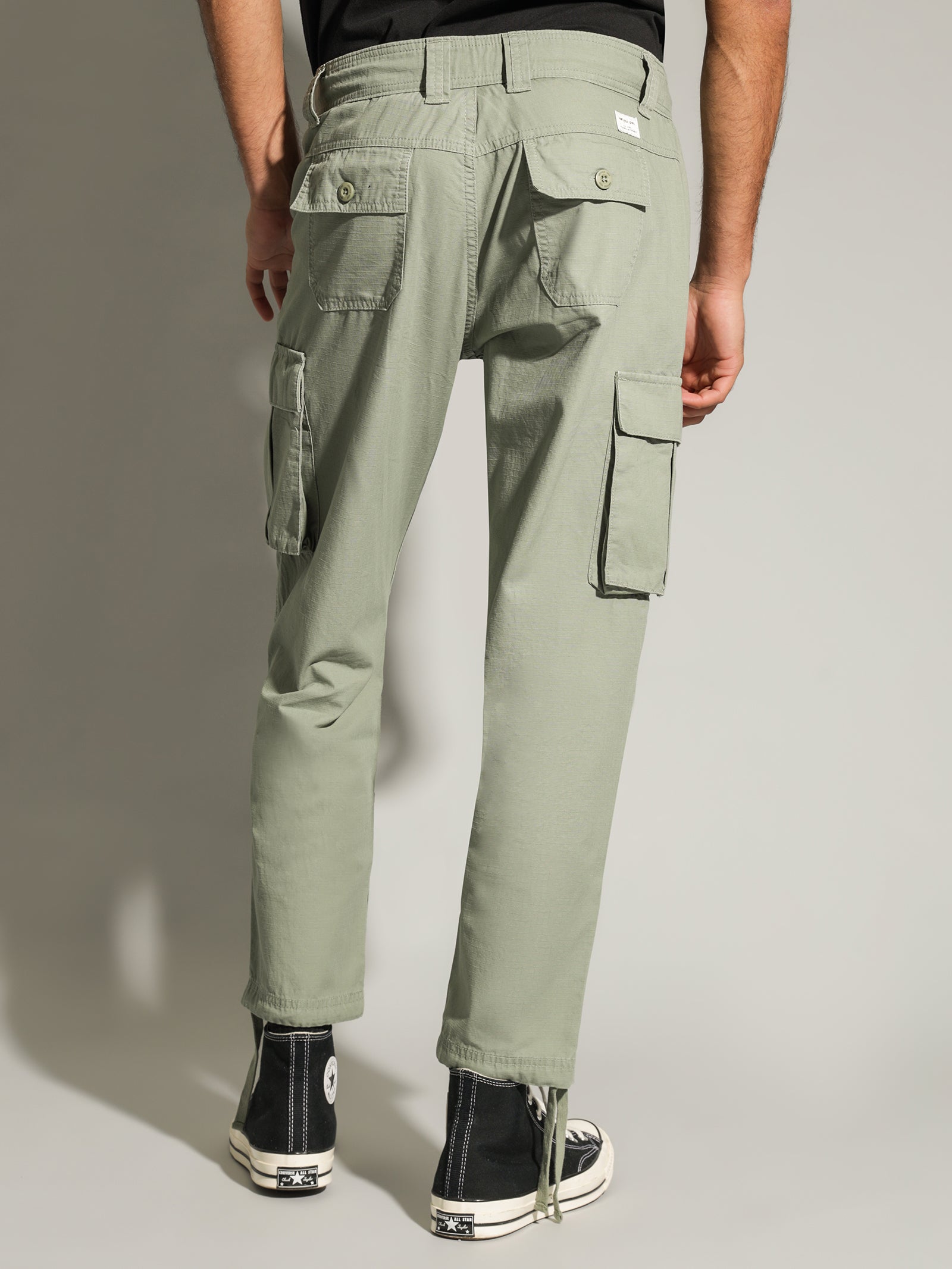 The Wyatt Cargo Pant in Willow is designed with a full-length, straight-leg fit.