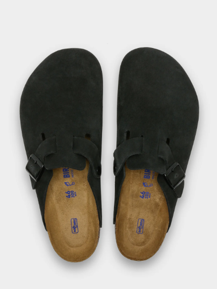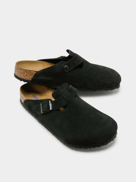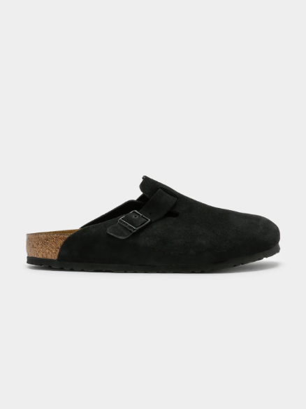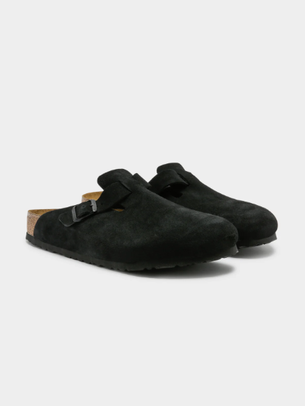The Birkenstock Boston SFB Shoes in Black offer a sophisticated take on the iconic clog, delivering both style and comfort in equal measure. Crafted from premium materials, the sleek black finish complements the sandal’s timeless design, while the anatomically shaped cork-latex footbed conforms to your foot for personalized support and comfort. The soft suede lining of these sandals promotes breathability, ensuring a comfortable fit throughout the day.
