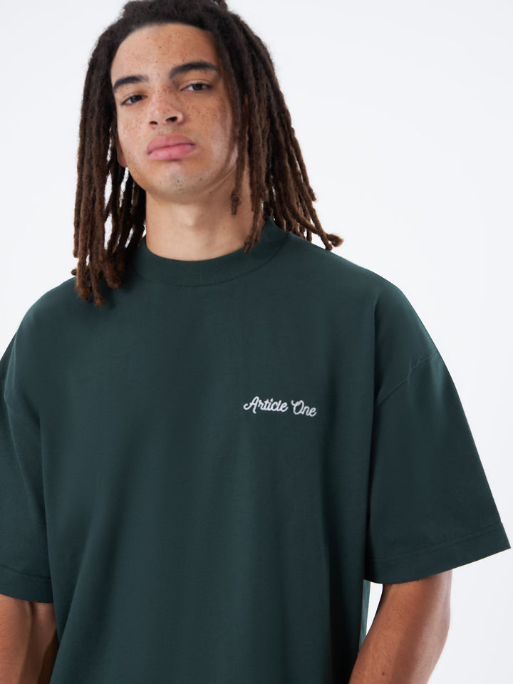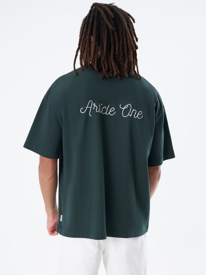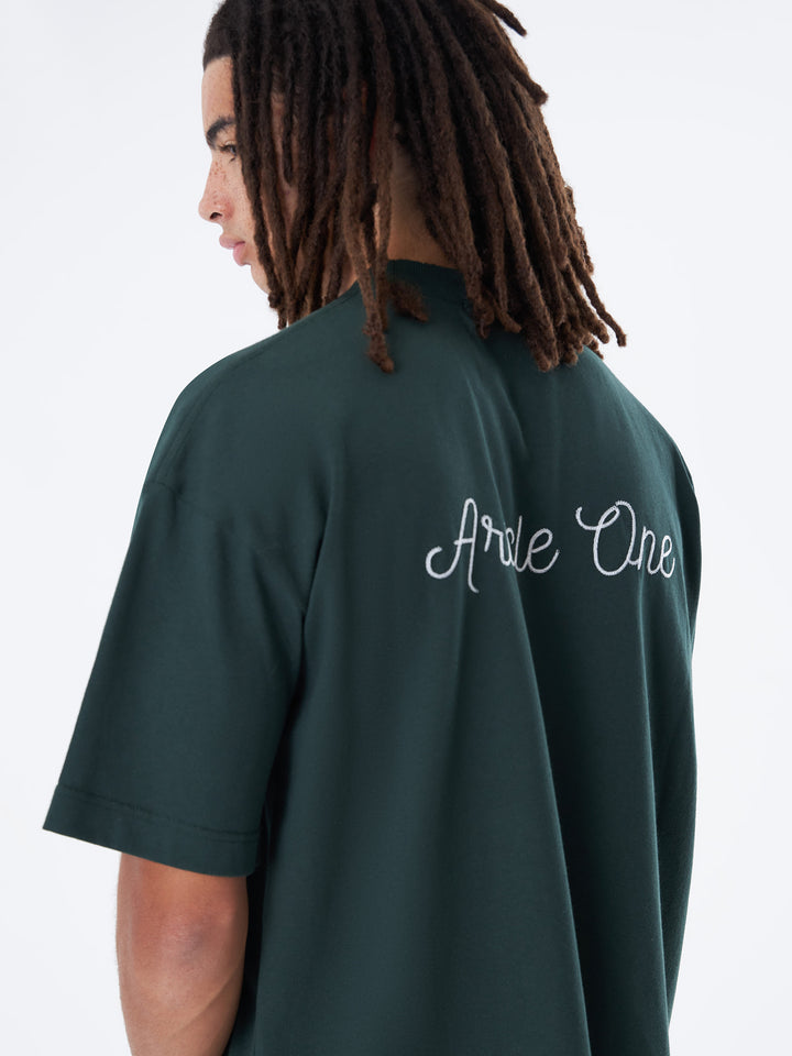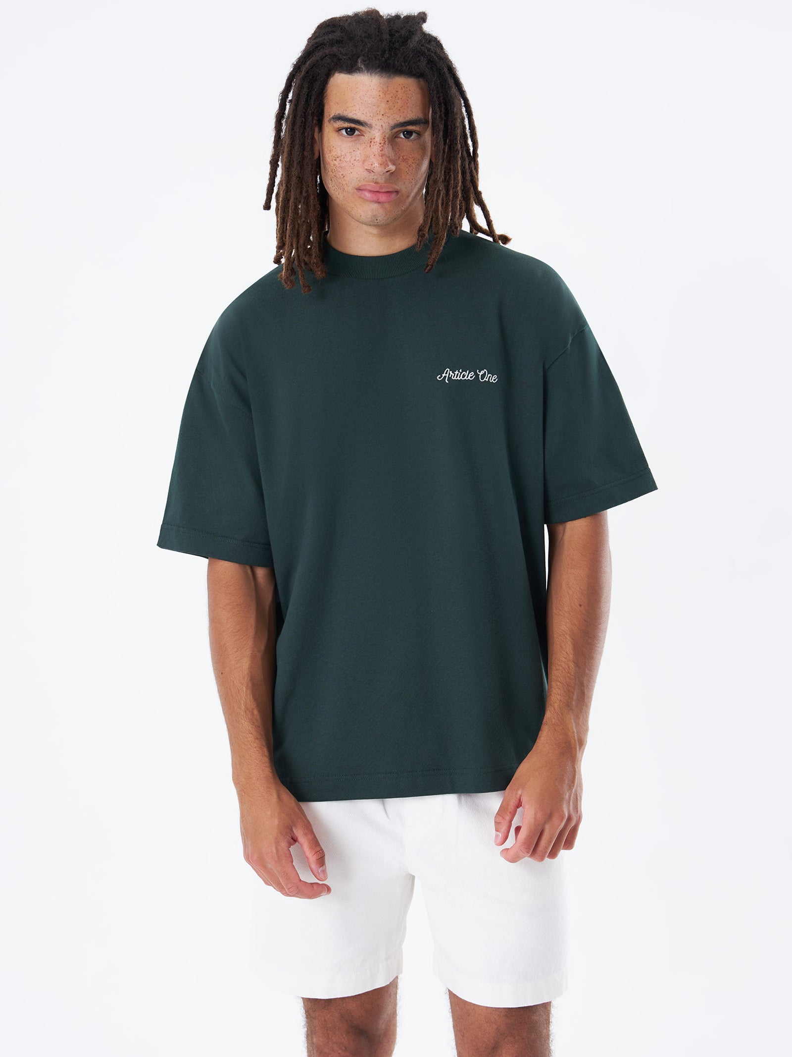 Our boxiest tee, cut for an oversized fit. Features chain-stitch style embroidery script logo.