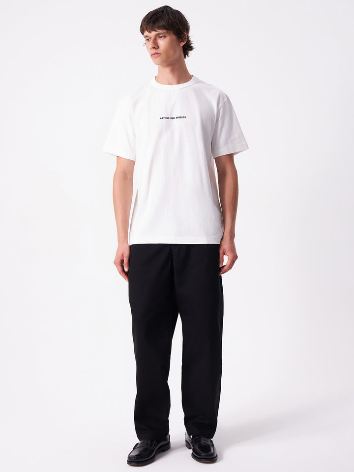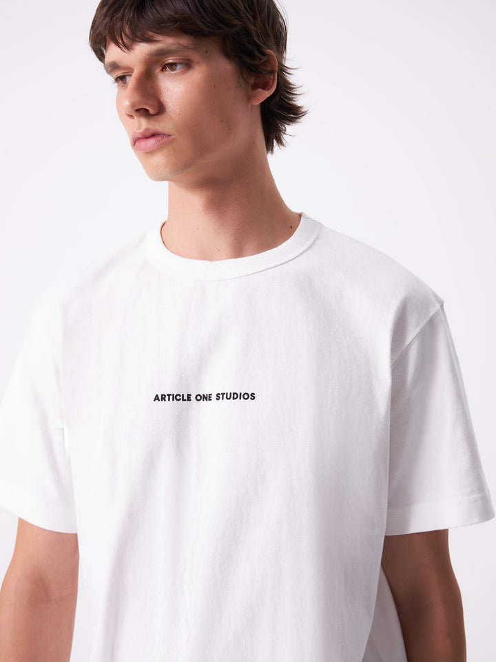 Boxy-fit, oversized tee, featuring minimal Article One printed logo.