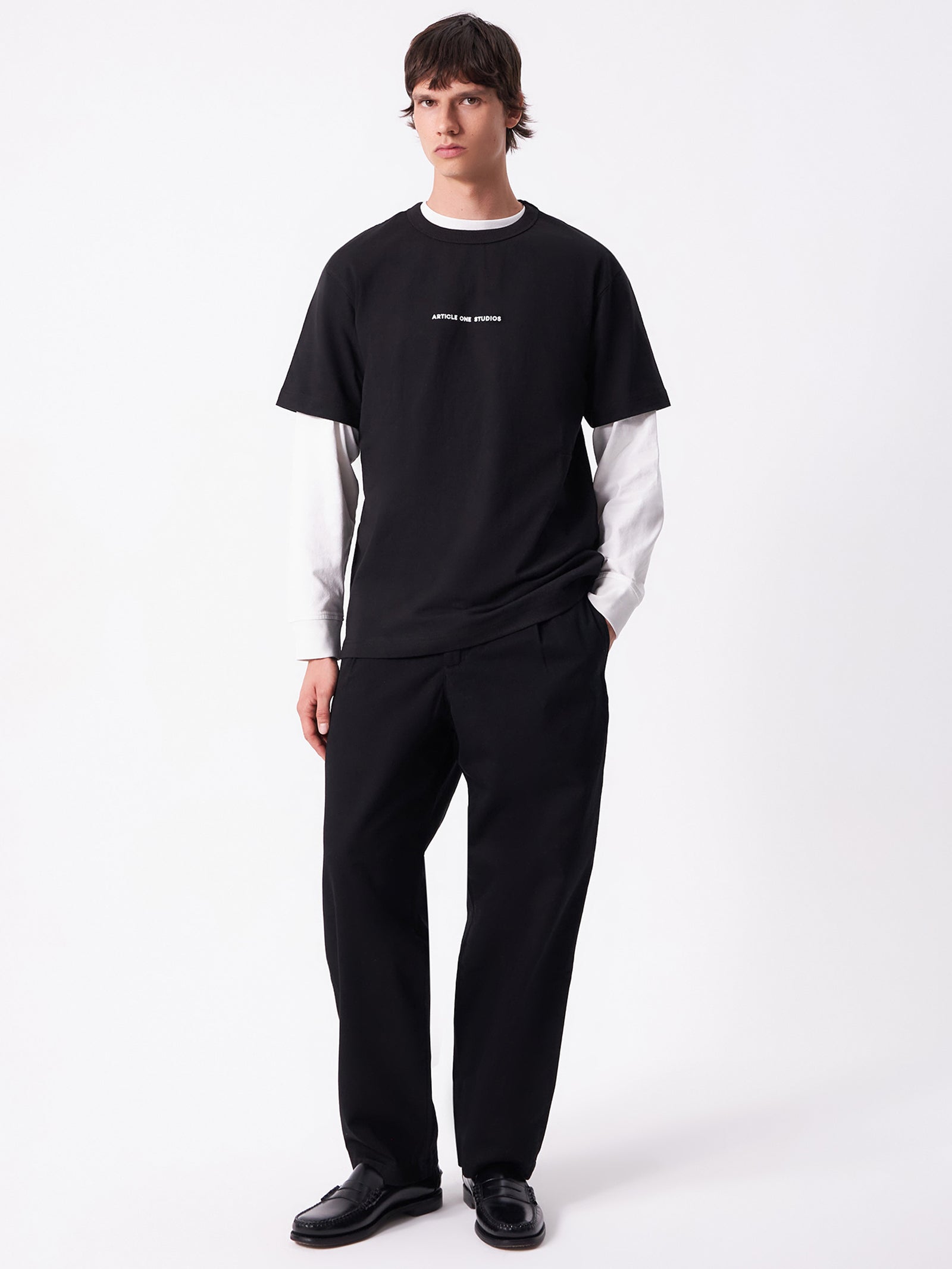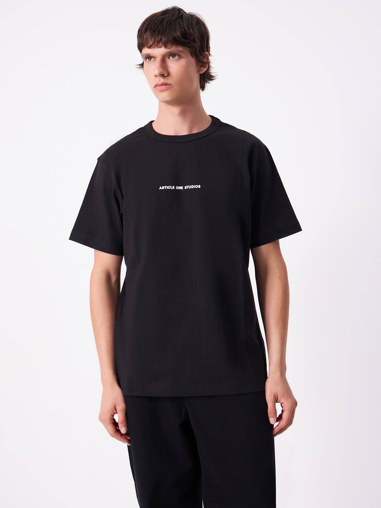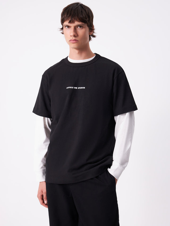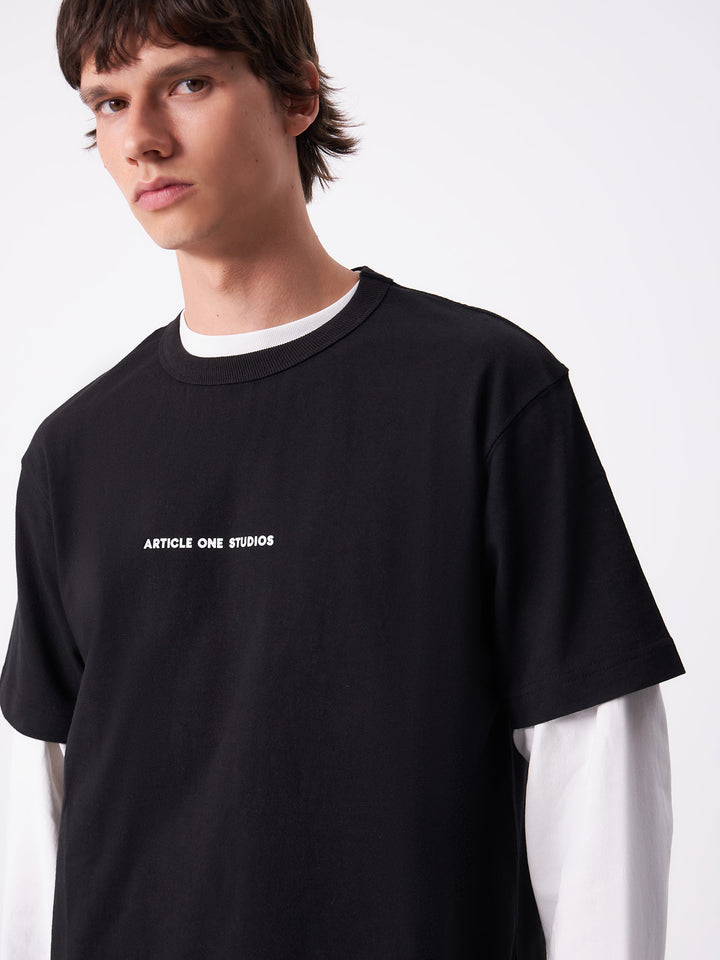 Boxy-fit, oversized tee, featuring minimal Article One printed logo.