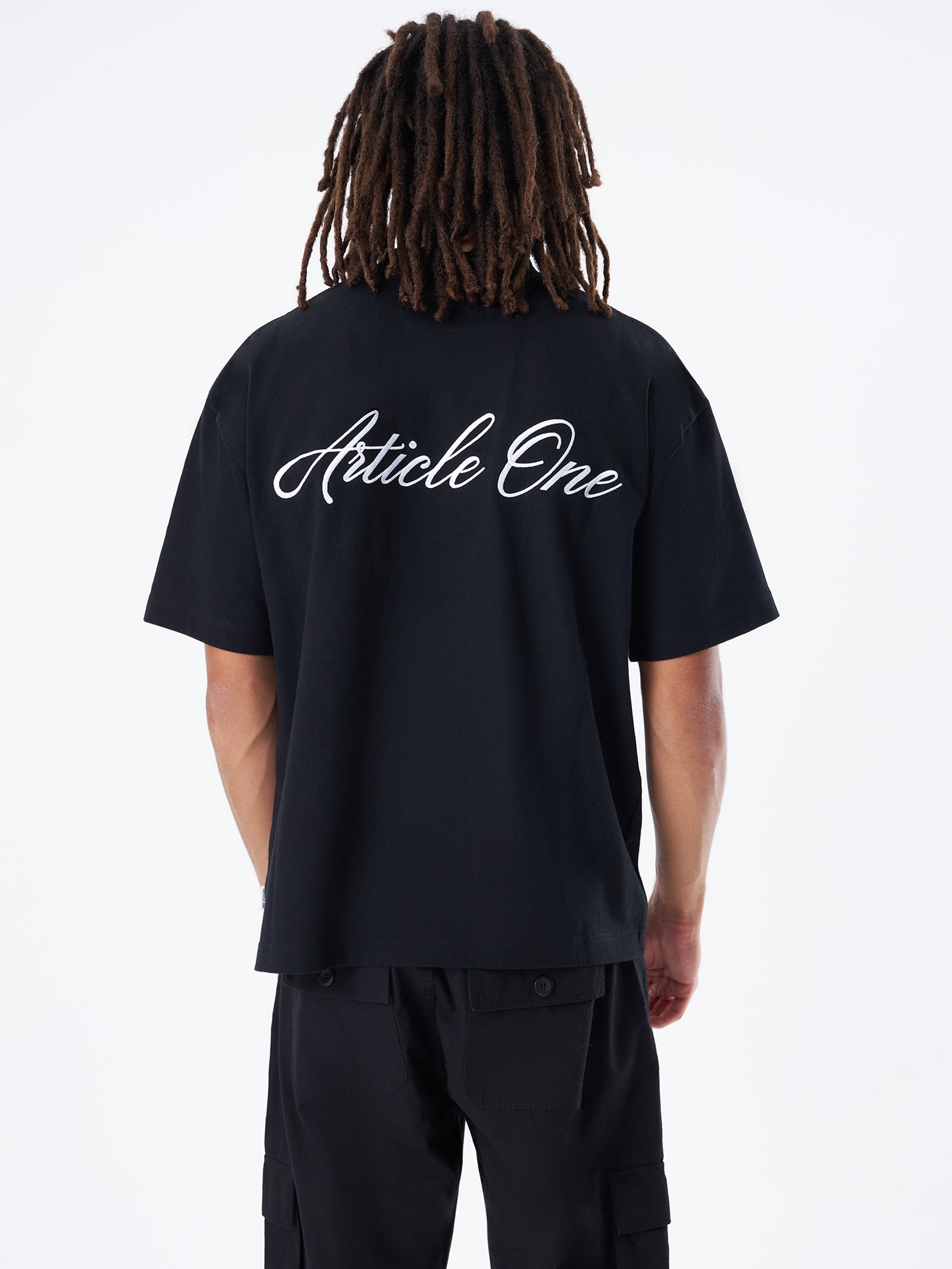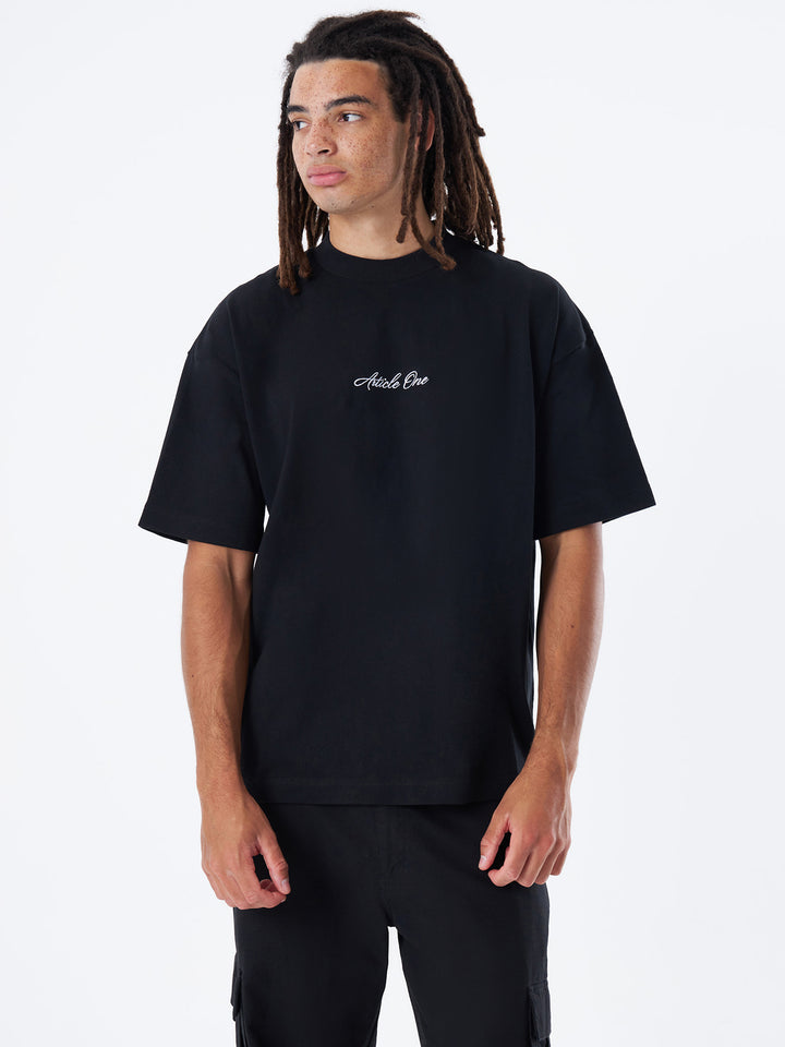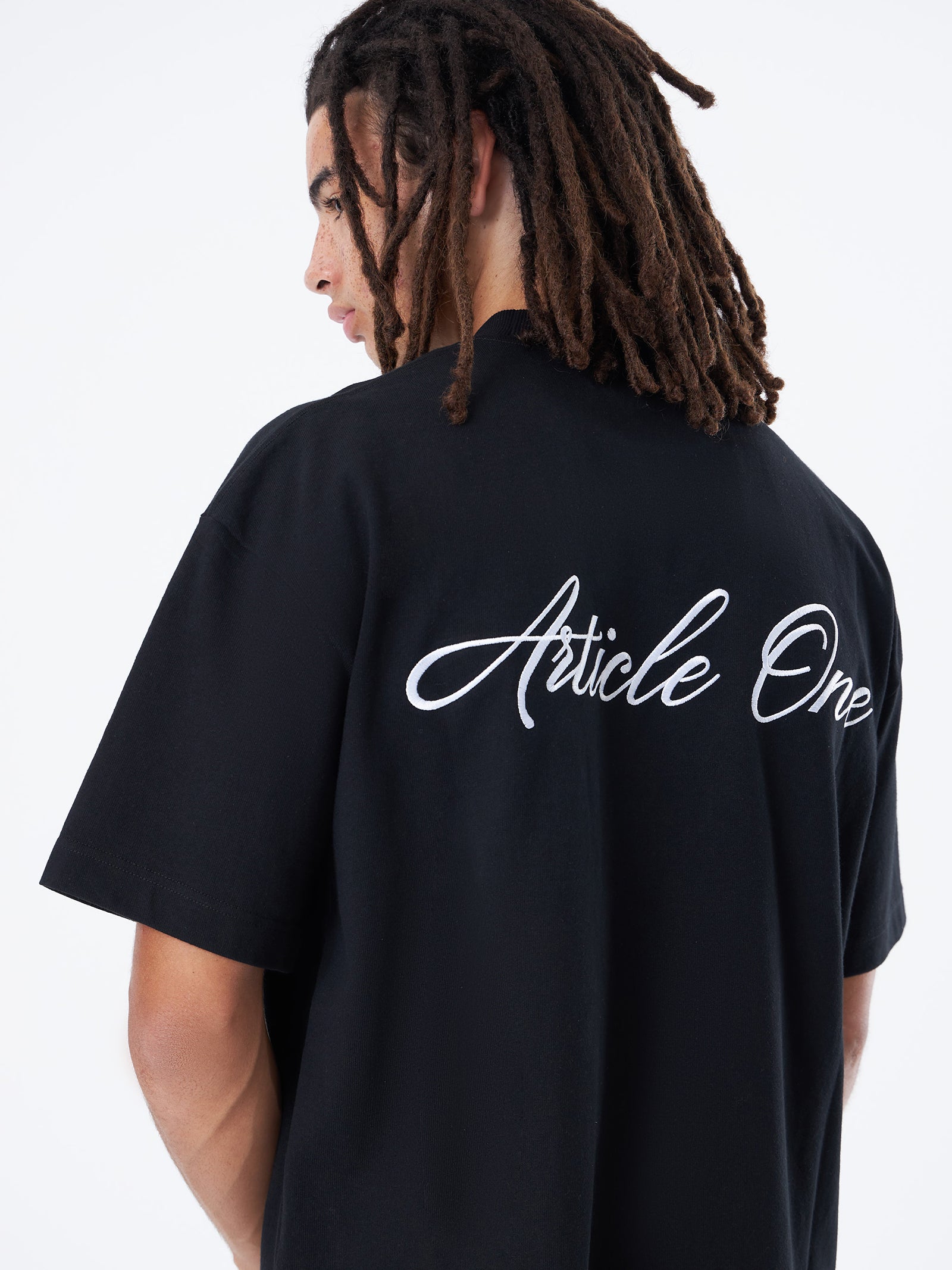 Our boxiest tee, cut for an oversized fit. Features a seasonal script Article One logo at the front and back.